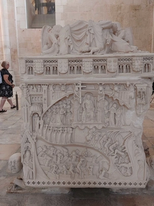 Aujourd’hui, leurs pierres tombales ornementées se font face à l’église d’Alcobaça, de telle manière, dit‑on, que le jour du jugement dernier, sa première vision soit celle de sa bien‑aimée Inês.