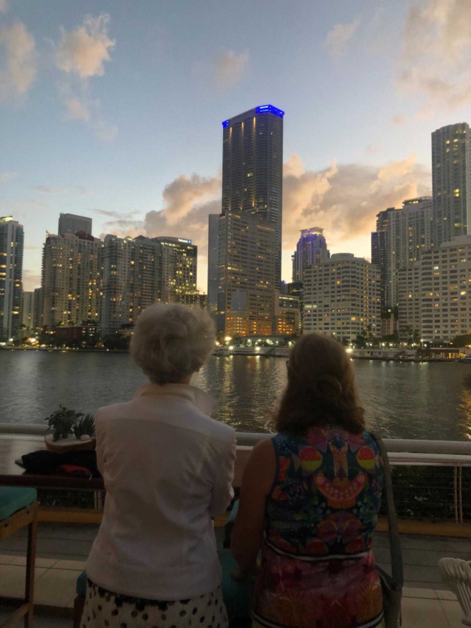 Après cet agréable repas en bonne compagnie, nous reprenons l’autobus et les paris repartent de plus belle. Bayside est situé à côté du port de Miami et plusieurs avaient déjà regardé quels navires étaient au port…. Lorsque Georges tourne dans l’autre direction c’est encore le questionnement...quel plaisir nous avons! L’autoroute 95 s’annonce et je les taquine à savoir si on se dirige vers le port de Fort Lauderdale à la place. Qu’à cela ne tienne, nous tournons à nouveau et nous voici en route vers le cœur de Miami et de ses hauts buildings.