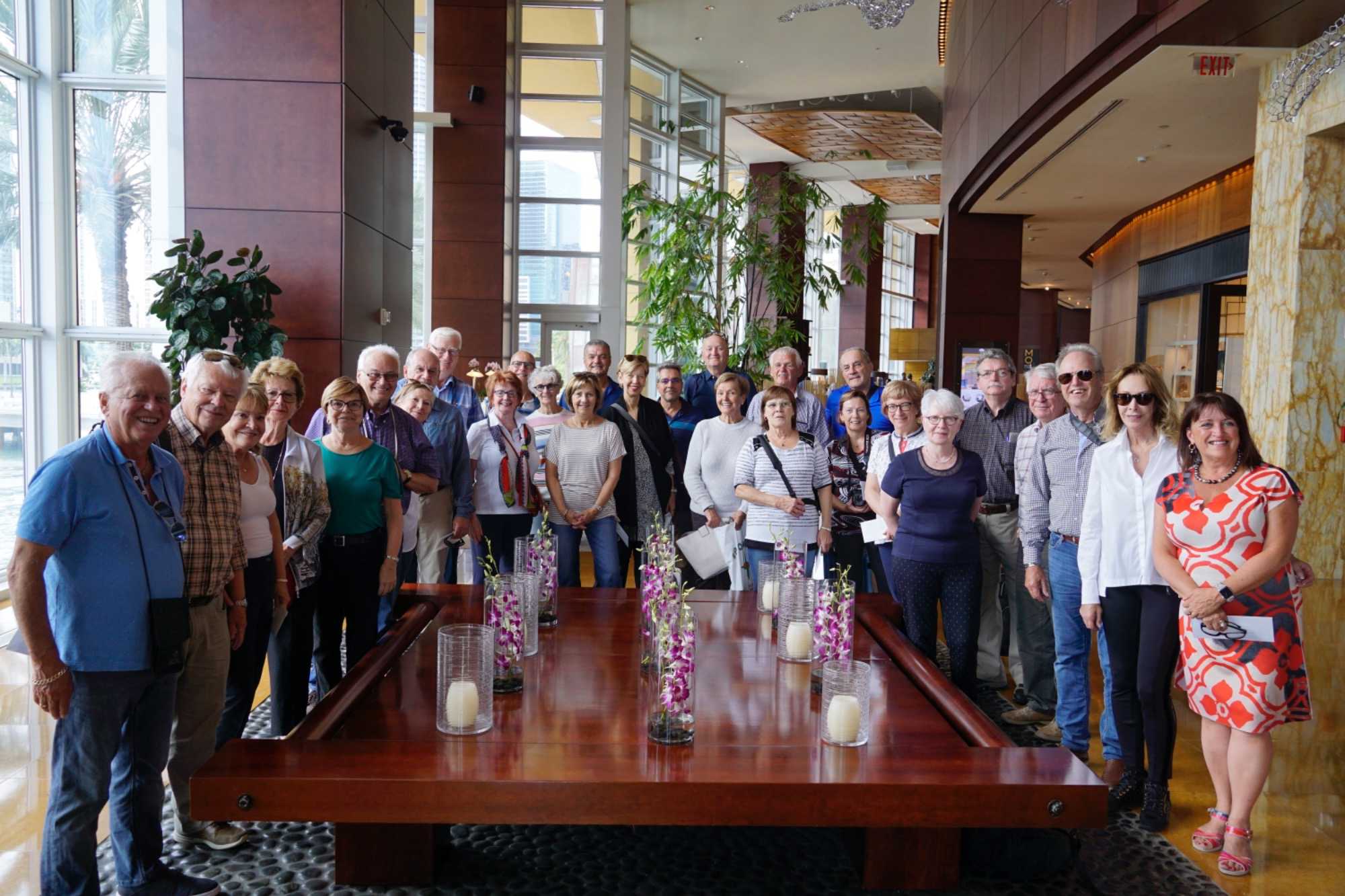 Notre réveil dans ce bel hôtel Marriott se fait bien tôt. Nous nous retrouvons tous en bas, au niveau des départs, prêts à partir. Première surprise, une belle dame du nom de Louise Gobeil arrive par la porte extérieure et nous rejoint en souriant. Elle leur annonce qu’elle participera à ce beau voyage surprise invitée par moi pour m’épauler pour leur faire encore davantage plaisir. Que du bonheur de partir avec Loulou! Donc les deux Louise sont prêtes pour ce nouveau défi. Nous avions réalisé dernièrement le merveilleux voyage en Nouvelle-Zélande et Australie au printemps dernier. De plus elle connaît déjà plusieurs voyageurs et tous sont heureux de l’avoir avec nous.