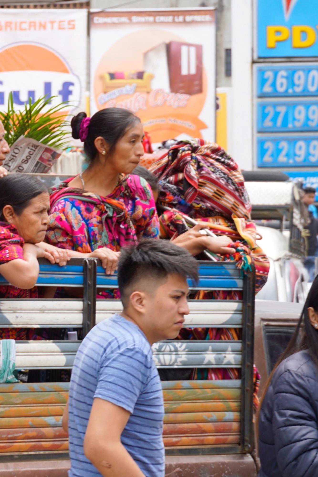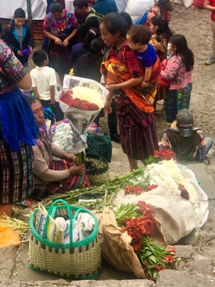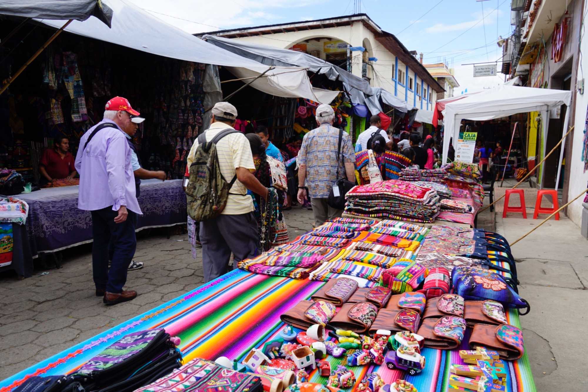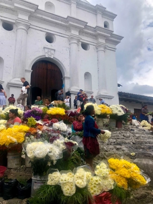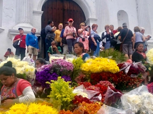 Dès notre arrivée nous partageons un excellent repas buffet qui nous permet de goûter à plusieurs mets locaux. Après le repas, nous nous dirigeons vers le principal attrait de la ville, le marché indien. Il est considéré comme le plus ancien et l'un des plus importants marchés d’Amérique Centrale. Véritable labyrinthe d’étals, empreint d'une ambiance enveloppante et animée, presque magique, le marché de Chichi propose une grande variété de produits dont tissus colorés ; masques étonnants, inspirés de ceux portés lors des danses traditionnelles ; blouses traditionnelles brodées (huipils), telles que les portent les femmes de la région ; magnifiques broderies ; hamacs ; bijoux ; jouets, et beaucoup plus. C'est l'un des meilleurs sites d'Amérique Centrale pour trouver un souvenir de voyage. Nous nous en donnons à cœur joie pour faire de belles photos : certains optent pour regarder seulement tandis que d’autres se laissent tenter par un petit achat local. Il faut dire que les dames sont tenaces mais jamais agressives pour nous vendre leur tissage coloré. Quelle explosion de couleurs et de dépaysement! Les guatémaltèques sont si gentils et accueillants.