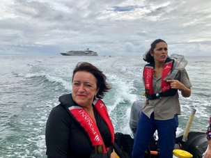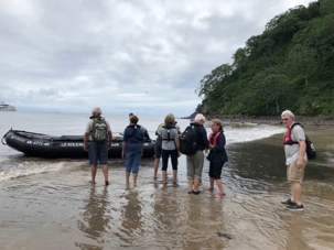 Nous quittons le navire pour notre premier tour en zodiaque de la croisière. C’est par groupe de 10 personnes que nous embarquons comme des découvreurs pour se rendre sur la plage où nous attendent les naturalistes pour nous aider à débarquer comme Ponant sait si bien le faire. Nous sommes portés sur la main comme on dit en bon québécois.