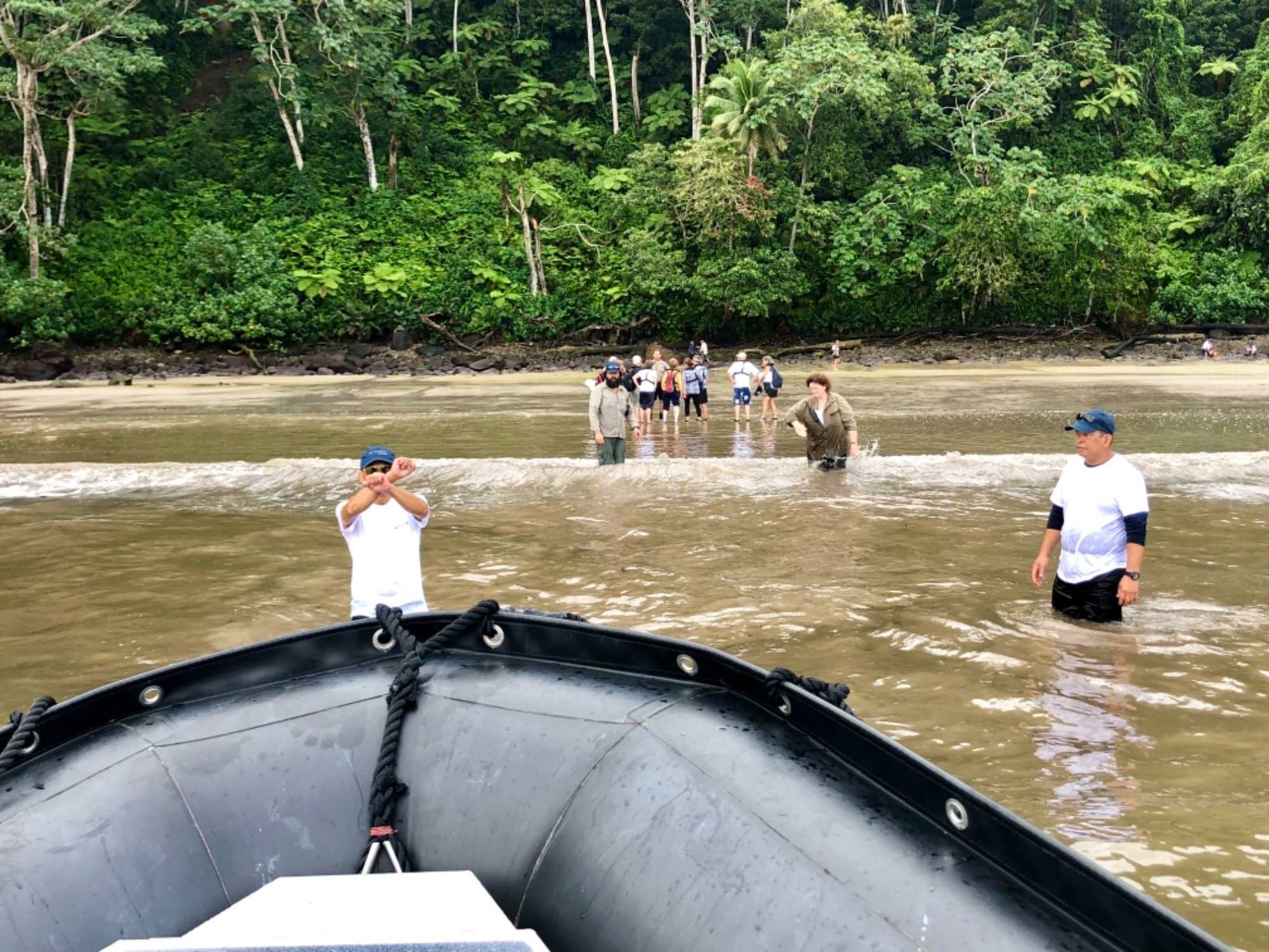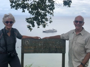 Après une bonne nuit de sommeil à se faire bercer nous sommes arrivés très tôt ce matin près de l’île de Coco. Nous sommes tellement chanceux car c’est une île où l’on reçoit 8 000 mm de pluie par année, bien oui 8 mètres pour ceux qui comptent vite. Finalement de la neige ce n’est pas si mal au Québec! Donc être ici, ce matin avec du soleil, c’est vraiment exceptionnel et nous l’apprécions énormément. Comme les sorties en zodiaque commençaient très tôt, soit à 7 h ce matin, nous étions tous prêts car nous devions assister obligatoirement à la présentation du parc national par les gardes du parc de l’Île de Coco. Ils devaient nous donner l’information nécessaire pour préserver cette île compte tenu que c’est un parc national. Lors de la planification pour les sorties nous avons hérité du premier groupe qui sortira à 7h et nous en étions bien heureux car la piste pour la marche serait moins achalandée et aussi avec toute la pluie qu’elle reçoit, elle devient vite glissante et difficile. Mais les premiers seront les chanceux et c’est nous!!!!