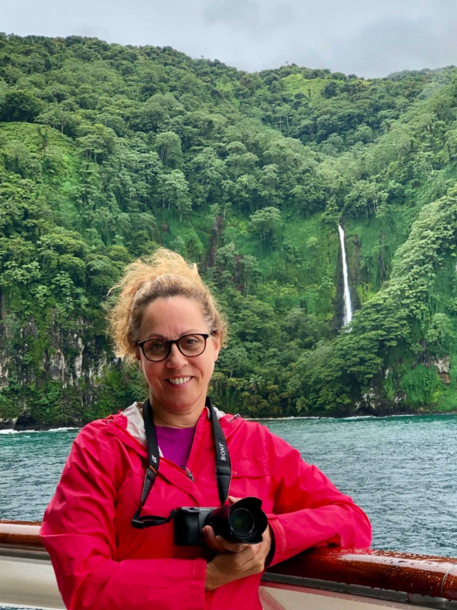 C’était le temps d’un petit café et de quelques grignotines pour profiter du reste de l’avant-midi. Après le repas du midi, le commandant nous avise que le prochain débarquement était impossible car les vagues s’étaient amplifiées et que nous allions faire le tour de l’île avec le navire. Quelle belle idée car ce fût une superbe découverte de voir ces falaises, ces chutes, cette végétation incroyable. Nous avons pris plus d’une heure pour en faire le tour et les nombreux oiseaux de l’île survolaient le navire pour nous montrer leurs belles couleurs. Quel spectacle d’une si belle nature intouchée! Je me sens toujours très privilégiée de pouvoir vivre ces beaux moments lors de mes voyages. Ce n’est pas tous les jours que nous pouvons visiter un site Patrimoine de l’Humanité si loin de toute civilisation, merci à Ponant de nous y avoir amené.