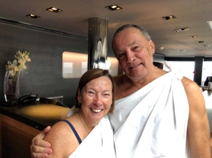 Comme aujourd’hui c’est la dernière journée à bord, ce sera le temps de faire quelques emplettes à la boutique et de se détendre à bord. Comme nous n’avions pu participer à une sortie, Ponant a offert à ceux qui ne pouvait réaliser l’excursion par le manque du vaccin contre la fièvre jaune un crédit de 250 euros par personne à dépenser à bord. C’était un beau cadeau pour se gâter ou faire de petits achats à la boutique. Ce fût bien apprécié de tous surtout que cela représentait un bon $700 canadien par couple. D’autres voyageurs ont préféré un bon massage ou soin corporel.