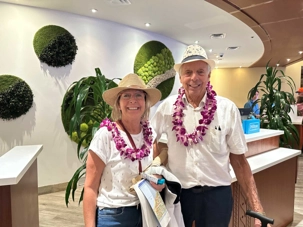 Notre arrivée à Honolulu est marquée sous le signe de la bonne humeur de tout le groupe. Nous avions une petite attente à notre arrivée, celle d’être accueillis avec les magnifiques colliers de fleurs emblèmes d’Hawaï. Mon fournisseur était préparé pour nous faire cet accueil pour notre grand bonheur. On se sent déjà en vacances et nous allons en profiter.