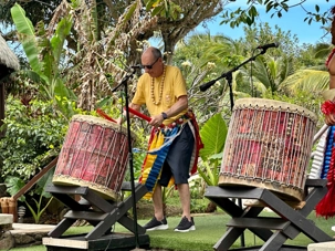J'avais réservé des places de choix tout près de la scène car durant le repas nous avons eu droit à un spectacle de danse et musique. Un autre moment de plaisir au paradis. Nous avons été accueillis par un ananas rempli d'un cocktail pina colada, juste la présentation était exceptionnelle. Après ce beau moment de détente nous avons eu une petite heure pour nous promener sur le site et faire quelques achats en attendant le plus beau moment de notre journée celui du grandiose spectacle qui était présenté dans leur immense théâtre. Nous étions dans les deux premières rangées et oui les meilleures pour pouvoir admirer les costumes et les danseurs. Quel féérique spectacle!