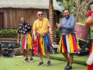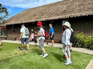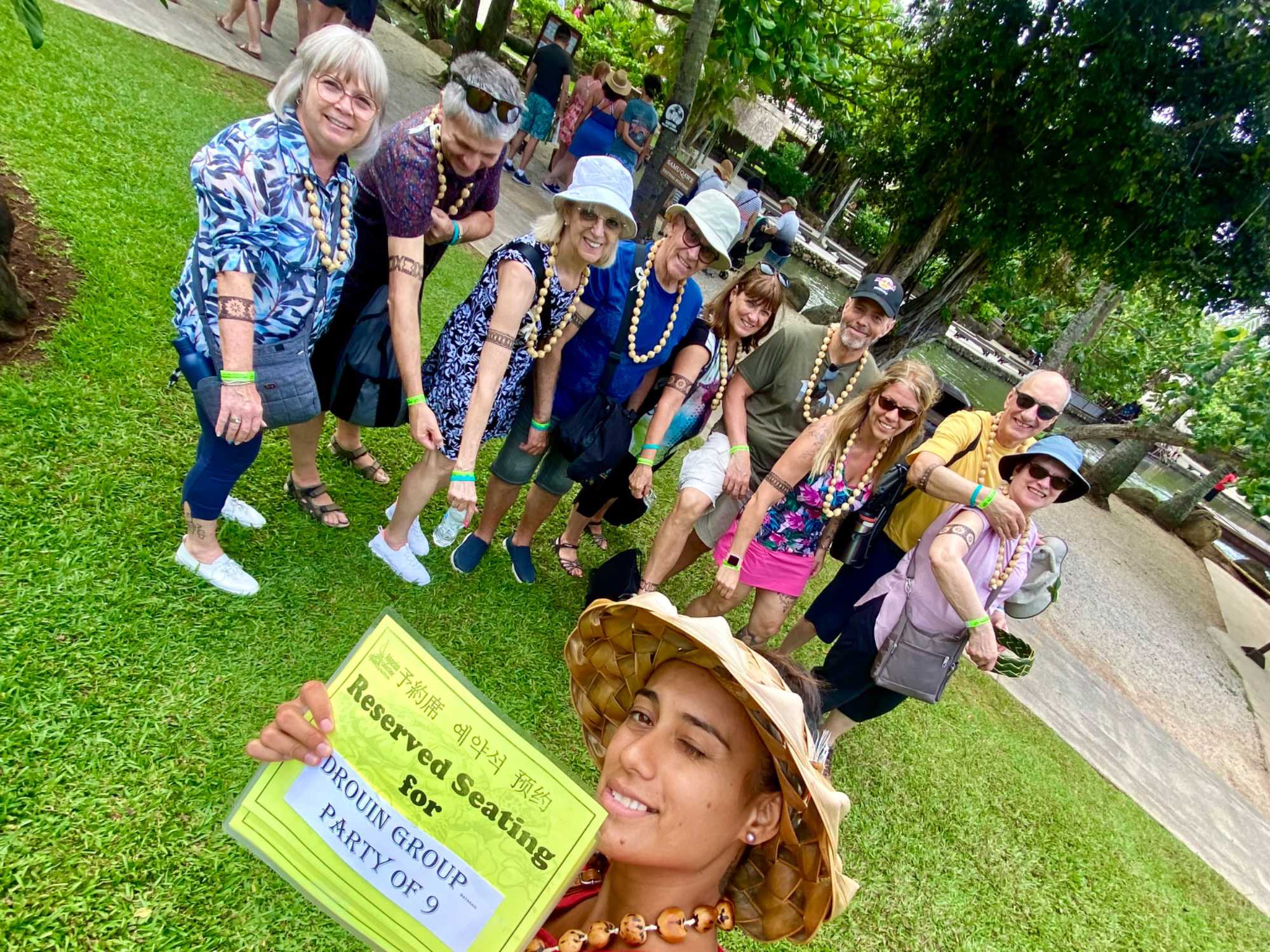 Nous sommes donc accueillis par nos 3 guides francophones que j'avais réservés pour diviser mon groupe en 3 petits groupes et visiter en leur compagnie ce grand site au millieu de fleurs et d'arbres majestueux. Nos trois guides sont des étudiants qui venaient de la Polynésie française et qui parlaient un excellent français et étaient d'excellents ambassadeurs du bonheur et de la joie de vivre. Ils étudient le matin et travaillent en après-midi et lorsqu'ils nous quittent ils ont des cours en soirée. Nous les avons beaucoup aimé ces guides exceptionnels.