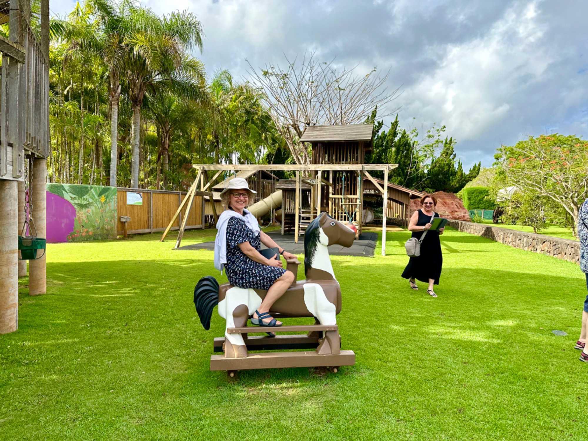 Une dernière journée dans la plus jolie des îles à mon avis, celle de Kauai. Comme le navire quittera à 14h aujourd’hui et qu’hier nous avons fait les belles attractions de l’île durant notre journée, je devais trouver une autre belle activité pas encore faite. Grâce à mes deux accompagnateurs, Diane Verville et Michel Caron qui avait passé plus de temps durant un de leur voyage sur l’Île de Kauai. Ils m’ont chaudement recommandée une visite d’un jardin situé sur le nord de l’île qui n’est pas dans la boucle des activités les plus populaires à cause de sa situation éloignée du port où était notre navire. En privatisant un transport pour mon groupe j’ai pu inclure cette visite. À ma grande surprise c’est un des jardins les plus impressionnants que j’ai eu le bonheur de visiter. Plusieurs connaissent les célèbres jardins Butchart sur l’île de Vancouver et je peux vous dire que ceux-ci sont tout aussi exceptionnels. Ce sont les jardins Na Ana Kai, et voici un peu l’histoire de ces jardins. Joyce et Ed Doty, les fondateurs de Na 'Āina Kai, ont développé leur extraordinaire vision artistique et horticole sur la base de leur amour profond pour la terre et les habitants des tropiques. Aujourd'hui, la mission de cette organisation à but non lucratif continue d'être multiforme, renforçant les fondations solides sur lesquelles les jardins ont été conçus. Les fondateurs des jardins, Joyce et Ed Doty, ont quitté leur ranch du nord de la Californie pour s'installer à Kaua'i en 1982. Ce qui n'était au départ qu'un projet d'aménagement paysager dans leur jardin s'est développé sur 240 acres pour devenir une myriade de jardins diversifiés, avec l'une des plus grandes collections de sculptures en bronze des États-Unis. En 1999, les Doty ont créé une fondation à but non lucratif, à laquelle ils ont fait don de l'ensemble des jardins. À cette époque, Na 'Āina Kai a été ouvert au public pour des visites et des événements. La mission de la fondation consiste à soutenir et à promouvoir l'horticulture tropicale, l'agriculture et la sylviculture, ainsi qu'à offrir aux habitants et aux visiteurs de Kauai des jardins et des œuvres d'art en constante évolution. En 1979, lorsque les Doty ont acheté leur premier terrain surplombant la plage de Kahili à Kilauea, il semblait qu'un autre couple avait choisi Kaua'i pour y passer sa retraite. Au fil des ans, les Doty ont démontré qu'ils n'étaient pas un couple typique. Le Na 'Ᾱina Kai Botanical Gardens and Sculpture Park s'est développée à partir du simple terrain de la maison de Joyce et Ed pour couvrir 240 acres, y compris plus de 200 sculptures en bronze grandeur nature. La vision artistique et la créativité inépuisable de Joyce ont véritablement fécondé la croissance du Na'Ᾱina Kai. L'industrie inlassable et l'engagement de ce couple ont créé un héritage durable. Puisse-t-il profiter à la communauté de Kauai'i pour les générations à venir.