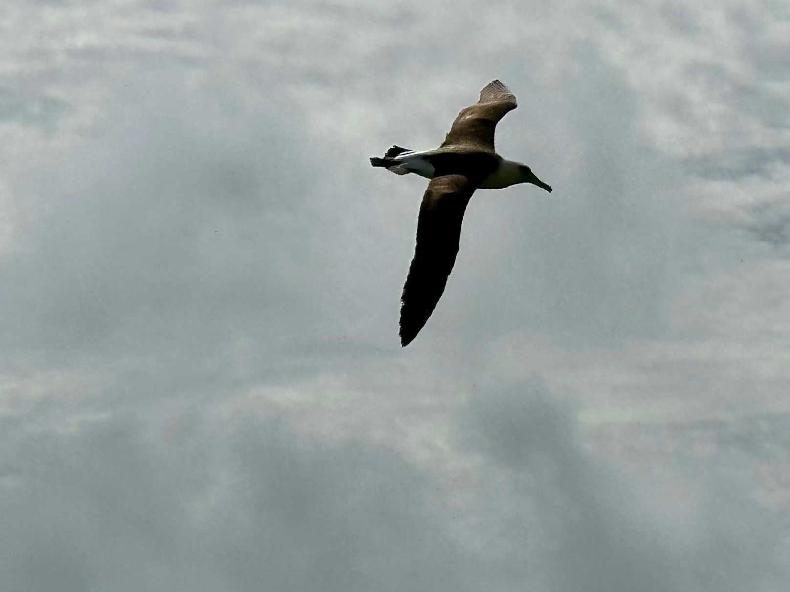 Le Moli mesure de 31 à 32 pouces de long, avec une envergure de 80 pouces. Il est blanc avec la queue et le haut des ailes noirs, des motifs foncés sous les ailes, une tache noire autour de l'œil et un bec, des pattes et des pieds roses. Souvent appelés "oiseaux à tête grise" parce qu'ils sont maladroits sur terre, le moli ou albatros plane gracieusement sur les vents près de la surface de l'océan. Ils commencent à se reproduire et à nicher en octobre et repartent à la fin du printemps. Ils pondent un seul œuf dans une éraflure du sable qu'ils utilisent pour nicher. Ils se nourrissent de gros calmars et d'œufs de poissons volants. Autre amusante information que notre guide nous a expliquée, que ces albatros dorment en volant car ils sont des mois sans aller à terre durant leur migration.