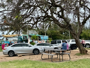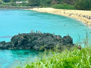 Nous avons fait un arrêt authentique en cours de visite pour notre lunch. C'est un endroit populaire pour les locaux pour aller luncher dans ces "foodtruck". Comme on fait l'élevage de crevettes dans ce coin de l'île, les crevettes sont à l'honneur et elles étaient délicieuses. Plusieurs voyageurs se rappelaient de Hawai 5 O et de ces endroits pour manger comme les habitants le font. Par la suite, nous passons par Sunset Beach, rendu célèbre dans les années 1960 par les surfers attirés par les vagues gigantesques. Chanceux nous avons vus des tortues. En hiver, ces plages attirent toujours les surfers du monde entier.