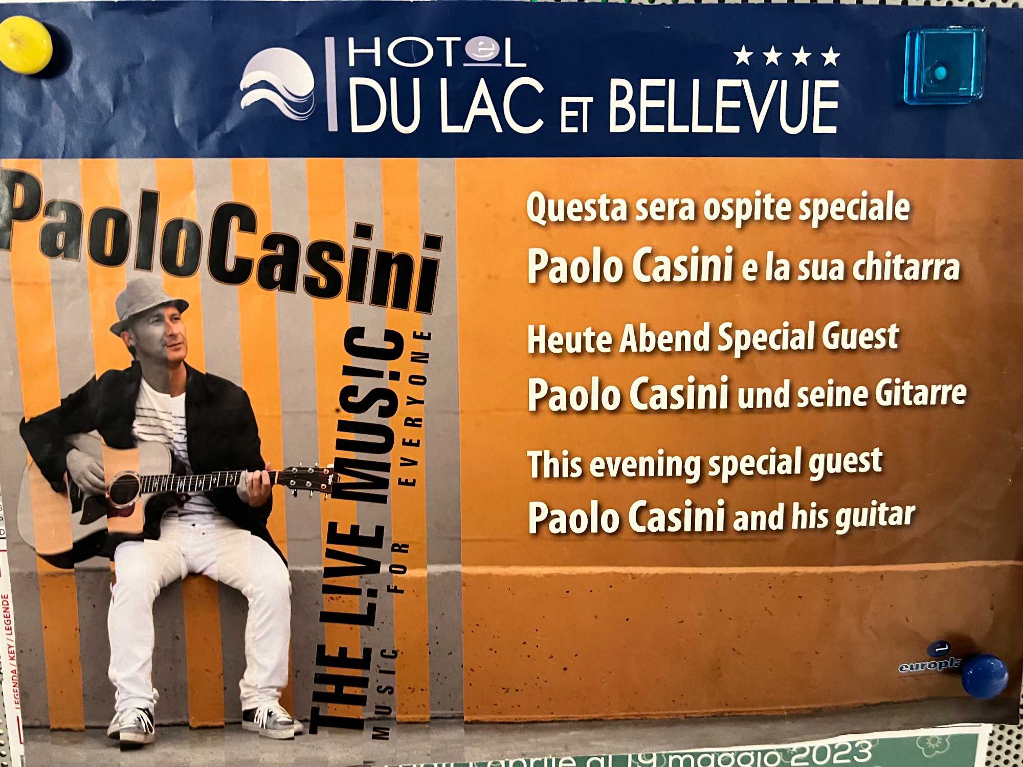 À 19h, notre hôtelier nous offre apéro et petites bouchées, au son d’un chansonnier. Il n’en fallait pas plus pour qu’on s’invite à la danse. Le temps de quelques chansons et c’est déjà le temps du souper. On mange superbement bien et heureusement, les portions ne sont pas trop grosses. Mais quand même, on a besoin de faire descendre nos calories prises dans la journée…