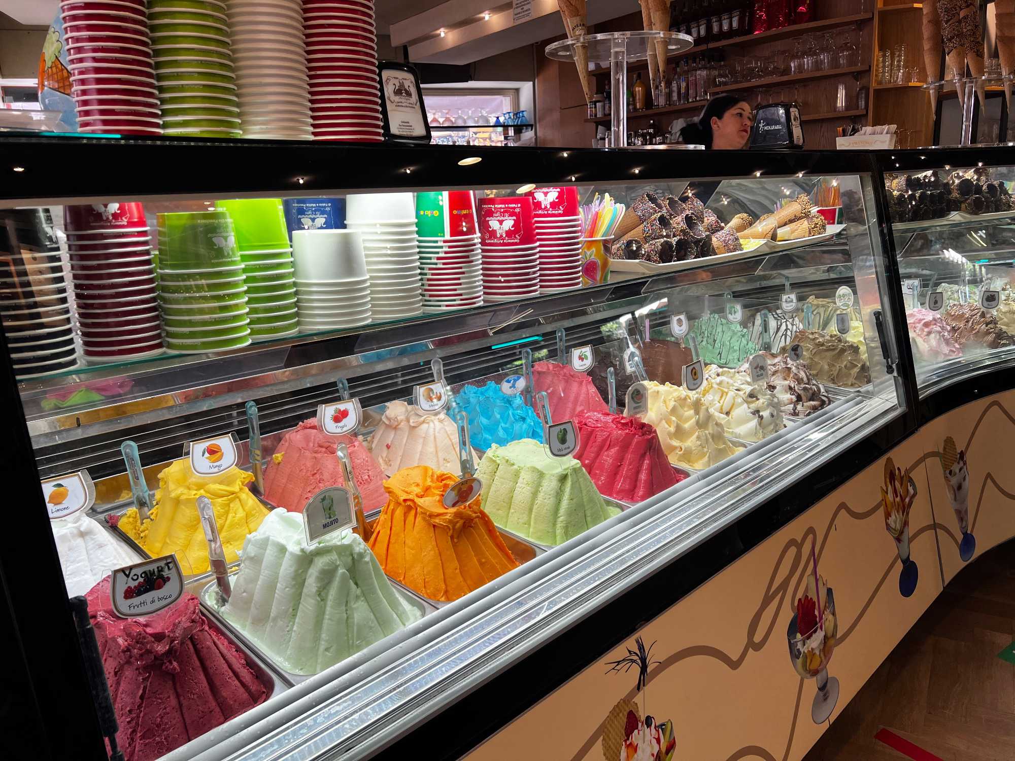 Ce matin, grasse matinée. Fernando nous a donné rendez-vous à 10h15 pour une promenade jusqu’au débarcadère du traversier qui nous amène à Sirmione. Jolie petite ville dominée par le très beau château médiéval, La Scaligera. Pendant notre temps libre, quelques personnes en ont profité pour le visiter. Pour les autres, ce fut une promenade dans les jolies ruelles de la ville. Il y avait pas mal de monde aujourd’hui car c’était dimanche. Il y avait plusieurs personnes sur les terrasses, mais surtout… aux gelaterias! Vous auriez dû voir les grosseurs des crèmes glacées que les gens mangeaient!!! Pas besoin de dîner avec ces portions! Bien sûr que je me suis laissée tentée…