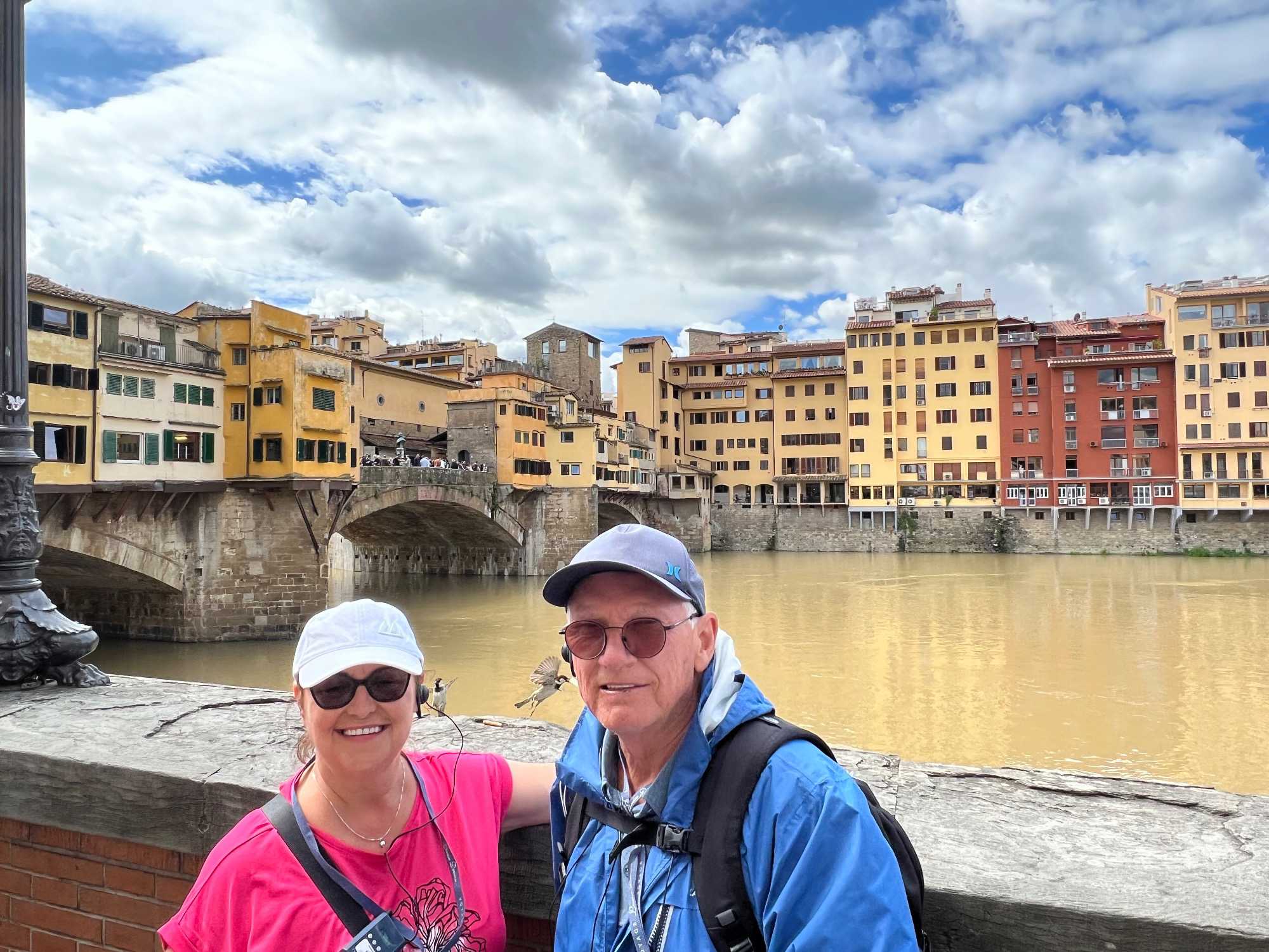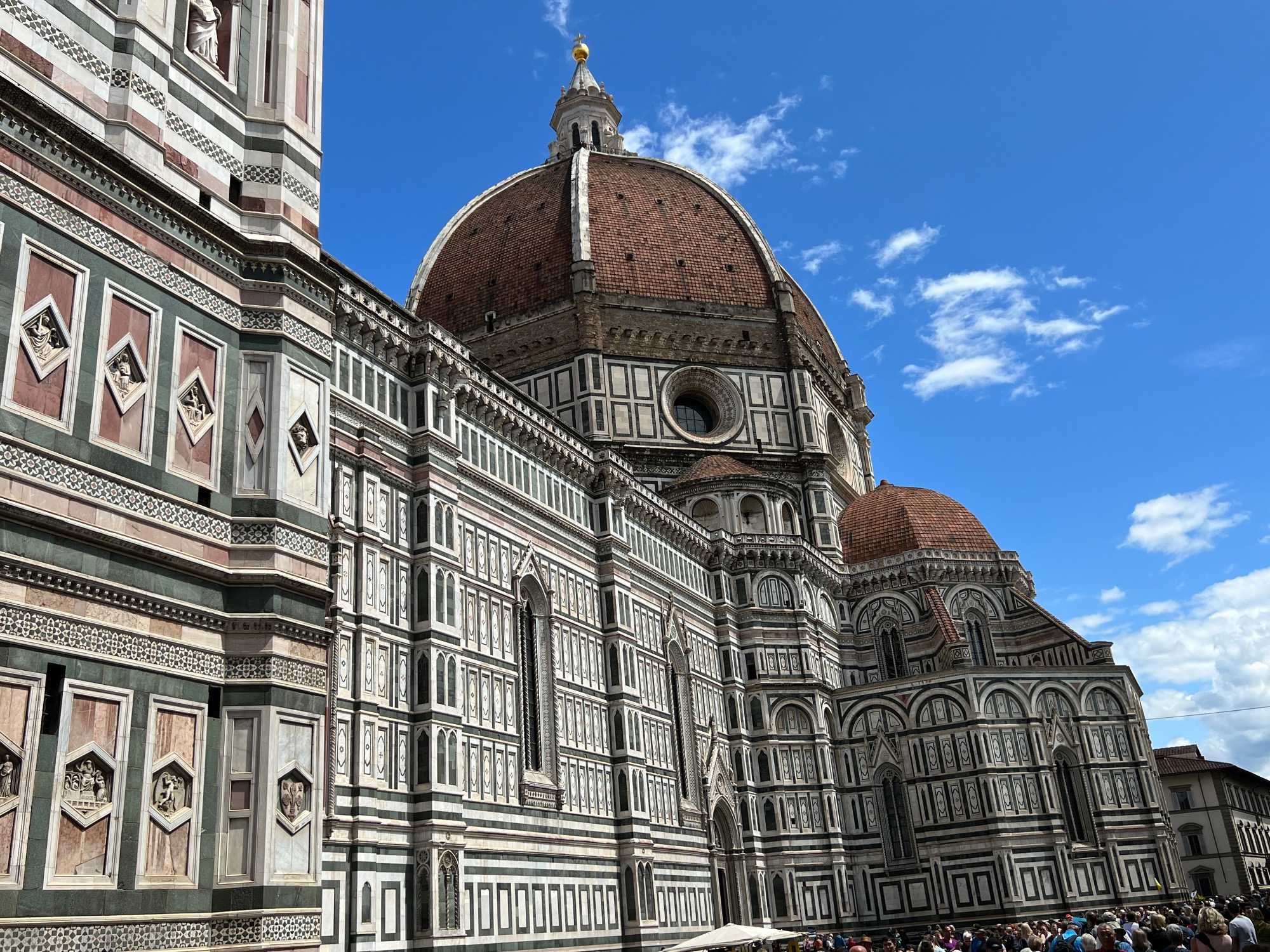 À notre arrivée à Florence, nous rencontrons Elvira qui nous fera visiter sa ville en avant-midi. Quelle merveille cette cité de Florence! La ville des arts. On voit plusieurs des bâtiments et places les plus connus de Florence. Une pause au Ponte Vecchio pour prendre de belles photos de nos voyageurs. Et on termine le tour avec l’apothéose: le Duomo de Florence! C’est un des bâtiments que je préfère dans tout le monde. Les couleurs du marbre: rose, blanc et vert, sont incroyables. Un vrai joyau architectural.