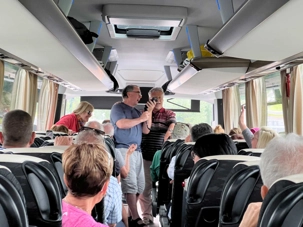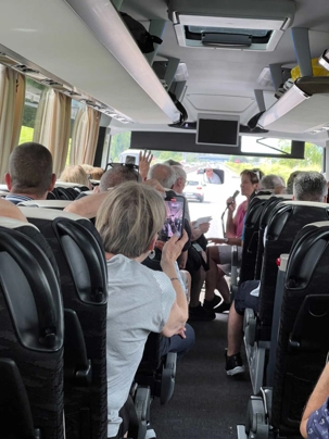Bonjour! Encore une fois, nous avons une superbe journée. La température est de notre bord: du soleil pour presque toute notre journée de visite. Seulement un orage de 10 minutes juste avant de retourner au bus en fin de journée. Nous sommes bien chanceux.