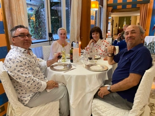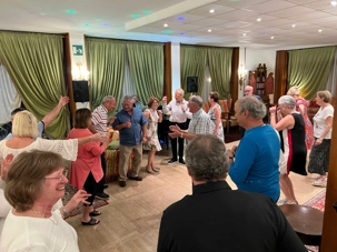 Notre journée ne finissait pas là! Et non! Dans notre groupe (tissé serré!), il y avait un évènement à célébrer… Nos amis Crystal et Ghislain célèbrent leur lune de miel par ce voyage. Alors, Fernando leur a organisé plein de petites surprises dont une ce soir à la table « d’honneur ». Ils ont eu leur bombe Alaska et ont fait leur voeux. Puis, il s’est passé quelque chose que ni Fernando, ni Robert ni moi avons déjà vécu: tous les voyageurs se sont cotisés (sous l’initiative de Francis, Lucie et Yvan), et Fernando a fait venir le chanteur/musicien à l’hôtel pour célébrer avec nos nouveaux amis. Par la même occasion, nous avons souligné les 46 ans de rencontre de Danielle et Benoit qui était la journée même. Ce fut une soirée mémorable. Que du bonheur et du plaisir. On a beaucoup dansé, vous allez le constater dans les photos!