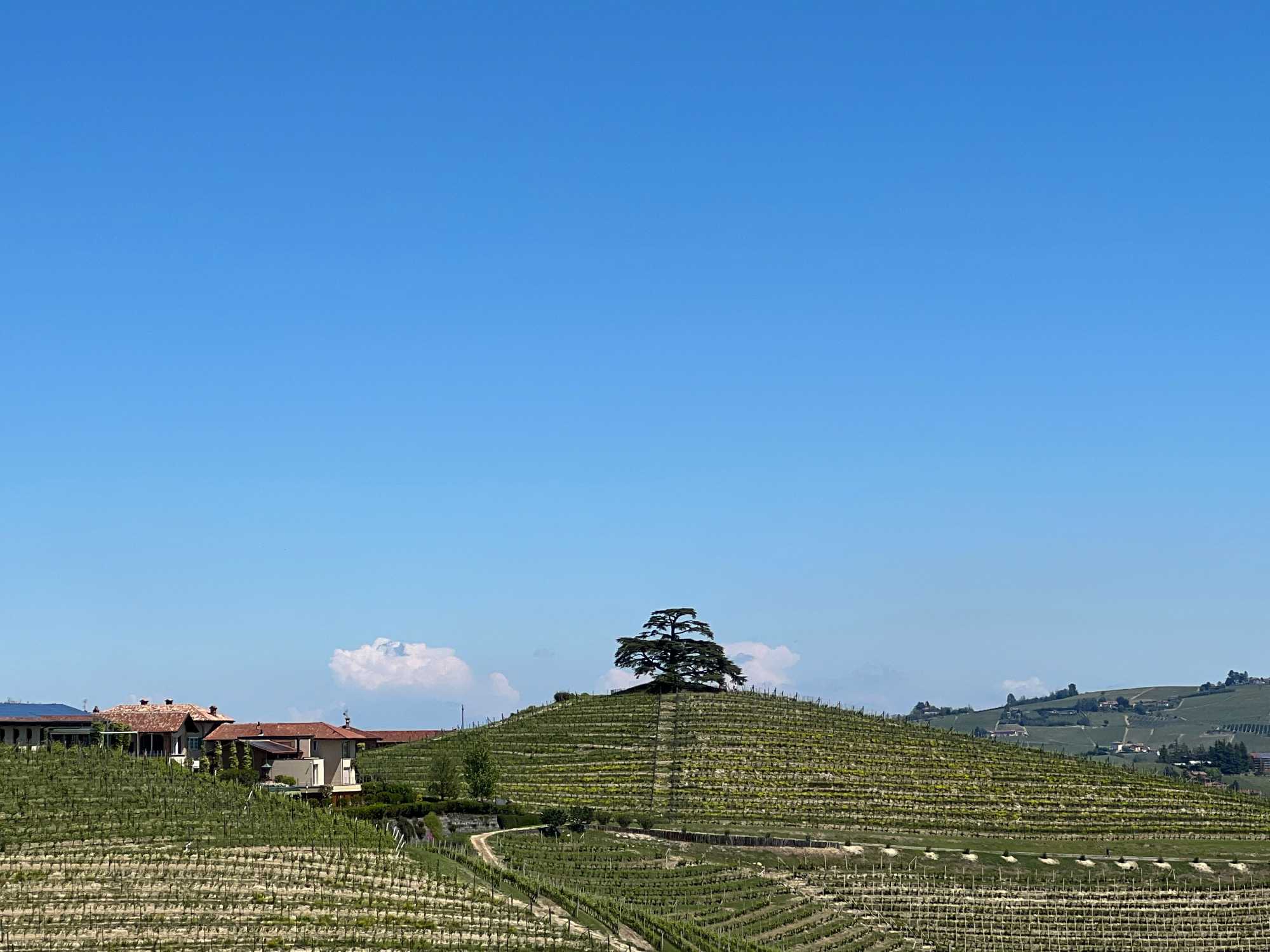 Notre belle balade panoramique à travers les villages typiques et historiques de la région, avec ses châteaux et ses forteresses, se poursuit toute la matinée. Nous voyons des vignes presqu’à l’infini. Fernando nous montre aussi des noisetiers. Savez-vous que le siège social du Nutella provient de cette région?