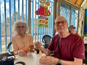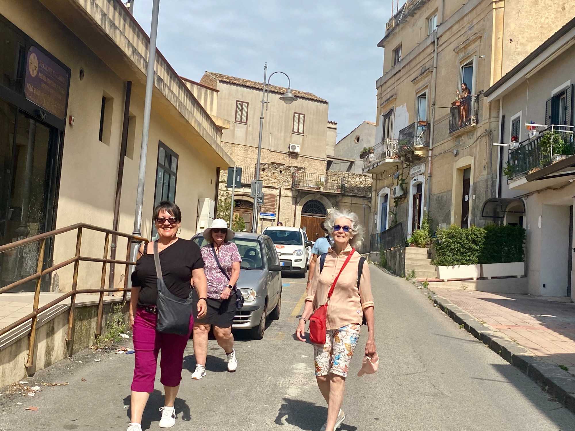 Nous avons organisé une sortie au centre du village, à laquelle 20 personnes ont participé. Deux d’entre nous ont choisi de s’y rendre à pied, parcourant 2.4 km le long du bord de mer sur des galets, tandis que d’autres ont utilisé un mini van qui a effectué 3 allers/retours transportant huit personnes 8 à la fois. Sur place, nous avons exploré les environs et profité de l’ambiance. Tous les villages ont un château. Celui que l’on voit sur la photo sert aujourd’hui de lieu à prendre des photos pour des mariages ou à des conférences. Certains en ont profité de l’ambiance pour déguster un gelato.
