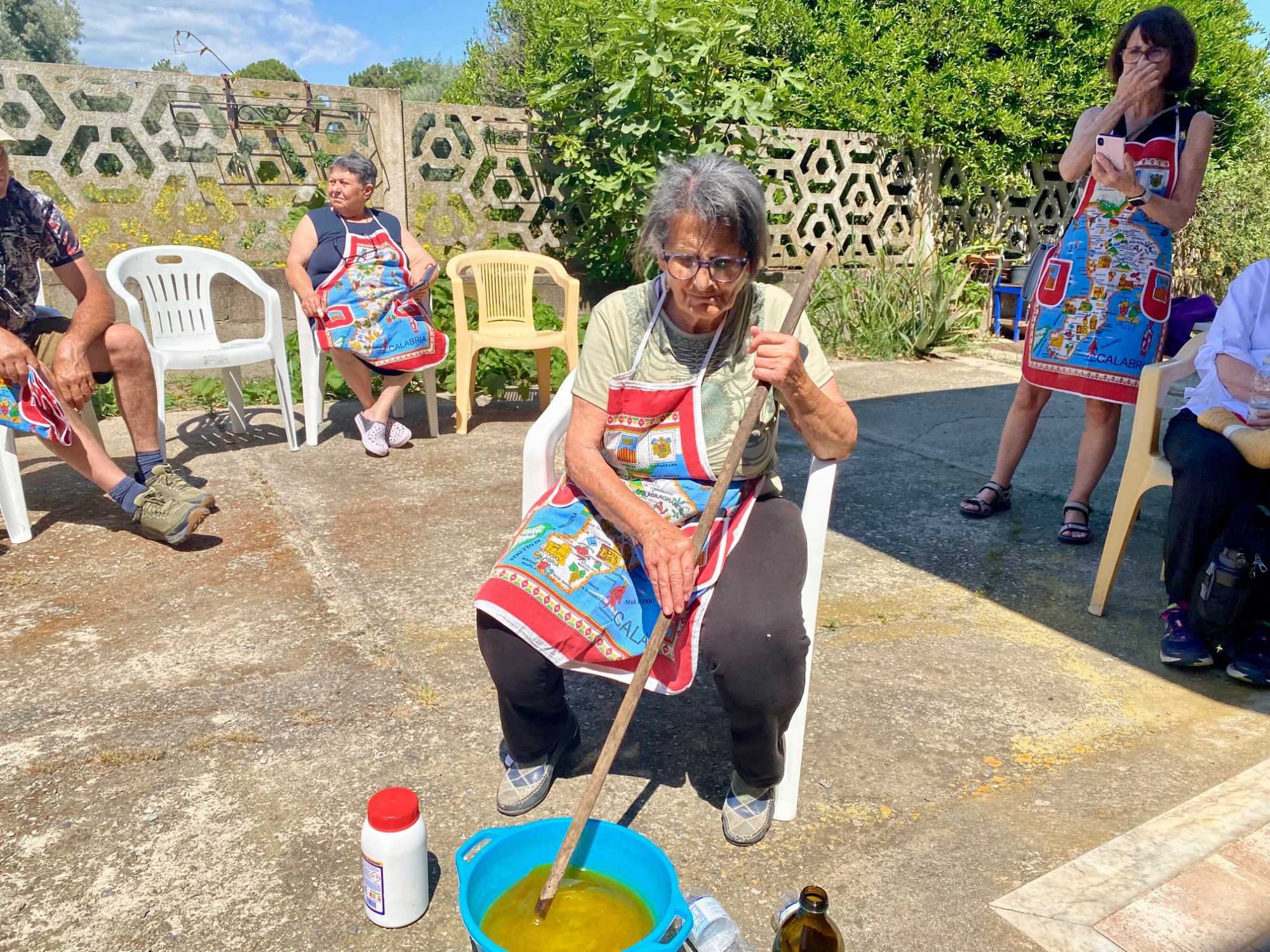En après-midi, nous apprenons à confectionner différentes variétés de pâtes. Nous avons également l’occasion de participer à la fabrication artisanale de savon à base d’huile d’olive, incluant la recette.