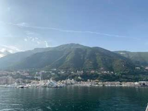 L’arrivée vers le port Castellammare. Au loin, nous ne pouvons manquer l'imposante montagne: le Vésuve. C'est un volcan jeune, mais l'un des plus dangereux. Sa dernière éruption a eu lieu en 1944. Aujourd’hui, il y avait une petite brume de chaleur qui nous cachait un peu pour prendre une photo.