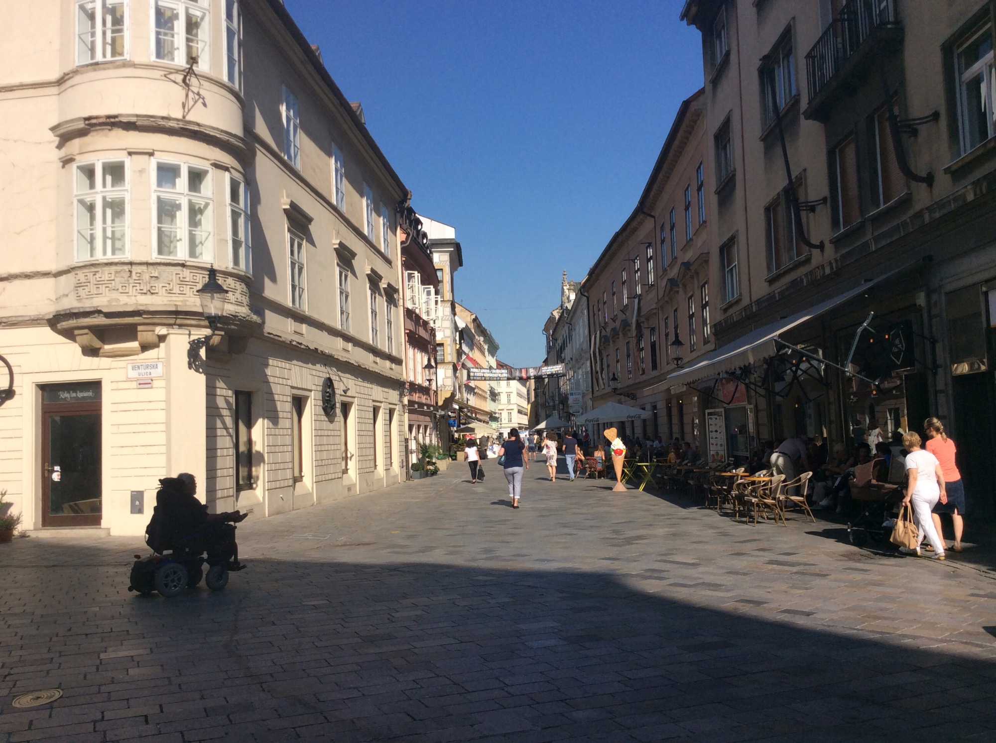 La Slovaquie est un petit pays de 5 millions d’habitants qui, autrefoism avec la République Tchèque formait la Tchécoslovaquie. Après un dîner au centre de la vieille ville, nous avons une heure de temps libre pour faire du shopping au bonheur des femmes. Il fait un soleil de plomb aujourd’hui avec 32 degrés. Notre guide locale vient à notre rencontre et ensemble nous partons dans les rues pavées à la découverte de la vieille ville.