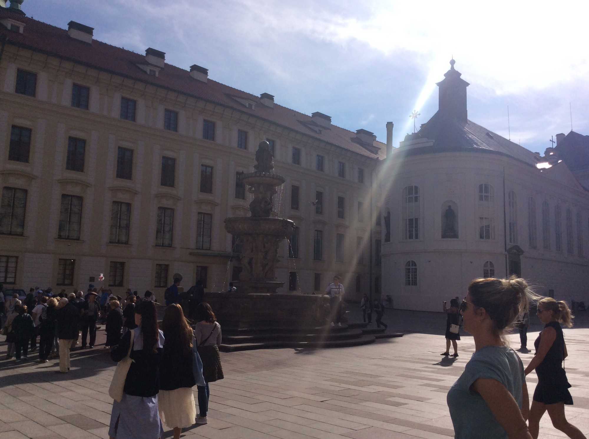 Après une bonne nuit de sommeil afin de retrouver notre énergie, c’est sous un magnifique soleil que nous partons ce matin en compagnie de notre chauffeur et de notre guide à la découverte du château de Prague et de son quartier. Nous y serons tout l’avant midi.