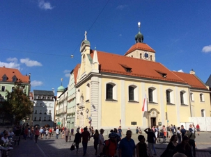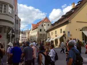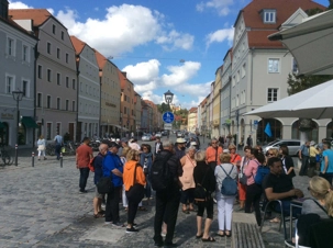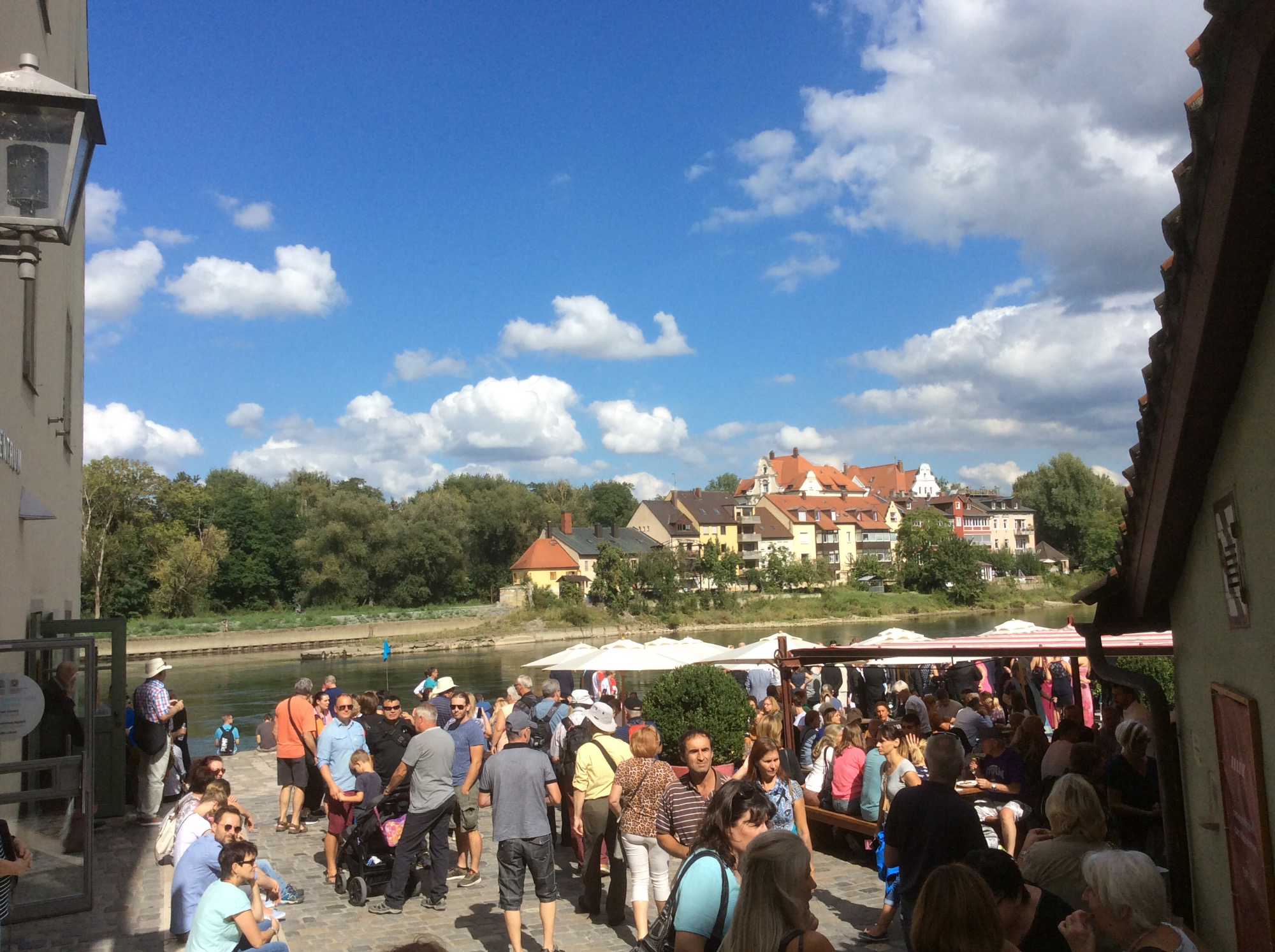 Nous arrivons à Ratisbonne (en allemand Regensburg) à 13h30. Notre guide locale, une sympathique Française du nom de Béatrice, nous y attend pour traverser le pont de pierre, achevé au 12e siècle, une pure merveille. Ses 310 mètres de long reposent sur 16 arches splendides, témoignage du savoir-faire au Moyen-Âge. Les chevaliers des croisades avaient coutume de le traverser pour se rendre en territoire sacré. Les terrasses de cafés sont conviviales et les « Biergarten » abondants. La rôtisserie historique, «die historische Wirstküche », se loge directement sur les bords du Danube où elle a été fondée il y a plusieurs siècles déjà. Les saucisses grillées et les choucroutes généreuses ont toujours le bon goût d’antan.