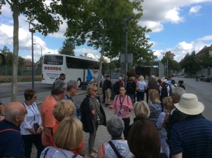 Nous prenons l’autobus de la compagnie Scenic afin d’atteindre notre objectif. En chemin, nous apercevons au loin, en flan de montagne, un immense bâtiment qui ressemble à un temple Grec. Il s’agit du temple Walhalla. Ce monument imposant est en quelque sorte un mémorial des hommes et des femmes qui ont illustré la civilisation germanique. Notre guide nous explique qu’on peut y admirer les bustes de grandes personnalités dont Adenauer, Beethoven , Bismarck, Copernic, Einstein. Admirer le temple à partir de l’autoroute, cela est très simple, mais y grimper, c’est une autre histoire. Il y aurait 480 marches à monter pour atteindre les portes du Walhalla. Nous allons nous contenter de visiter la vieille ville médiévale de Ratisbonne!