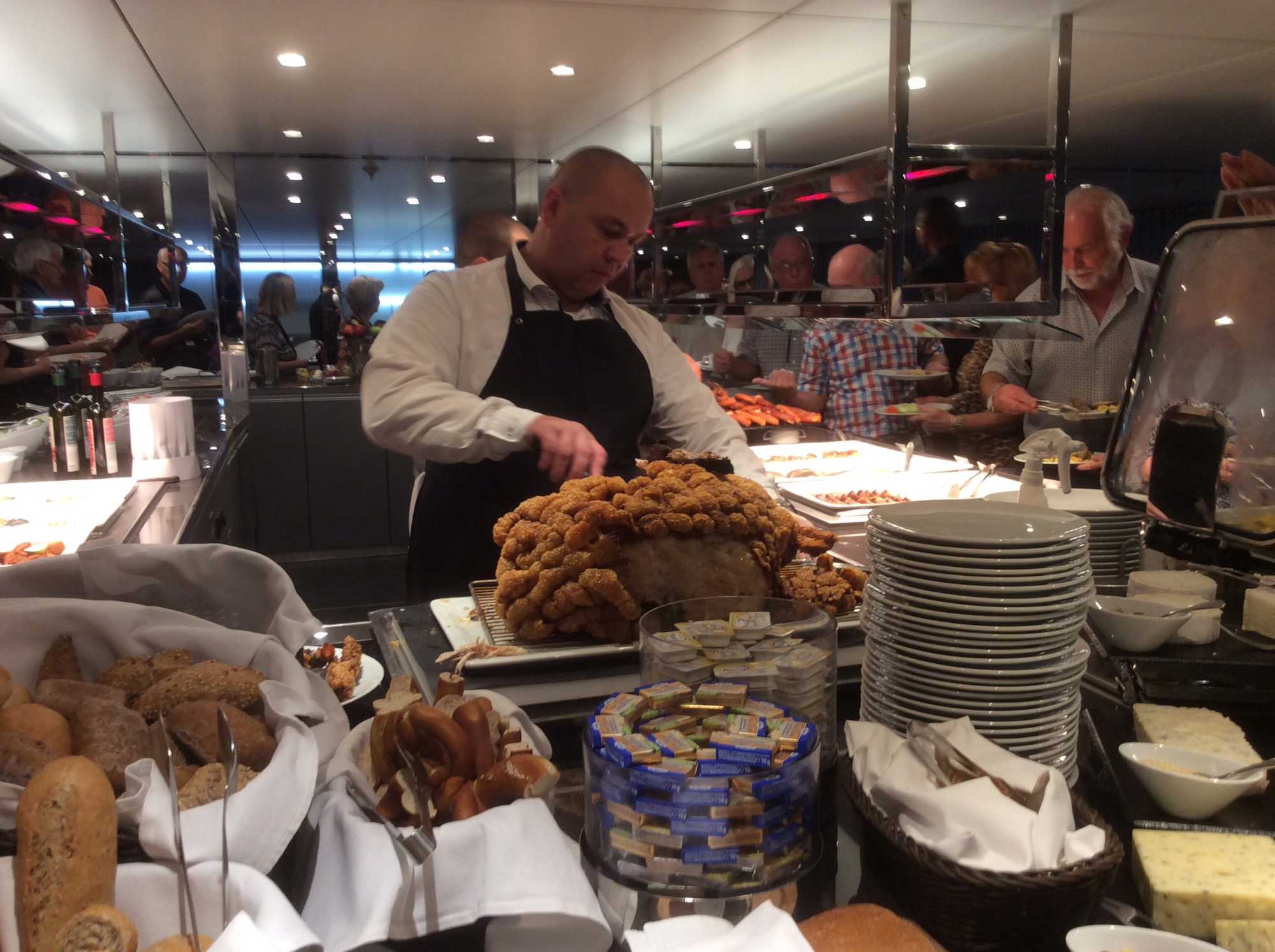 Aujourd'hui, nous pouvons profiter d'une grasse matinée, ce qui convient à l'ensemble de notre groupe puisque hier au soir, plusieurs voyageurs ont festoyé. Nous allons dîner à 11:00 heures puisque nous partons un peu plus tôt pour Ratisbonne. Le chef cuisinier nous a préparé un excellent buffet qui nous permettra de maintenir le cap jusqu’à la fin de la journée.