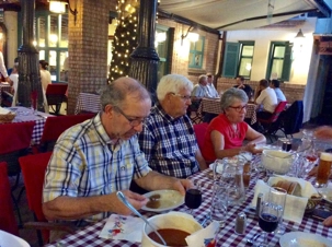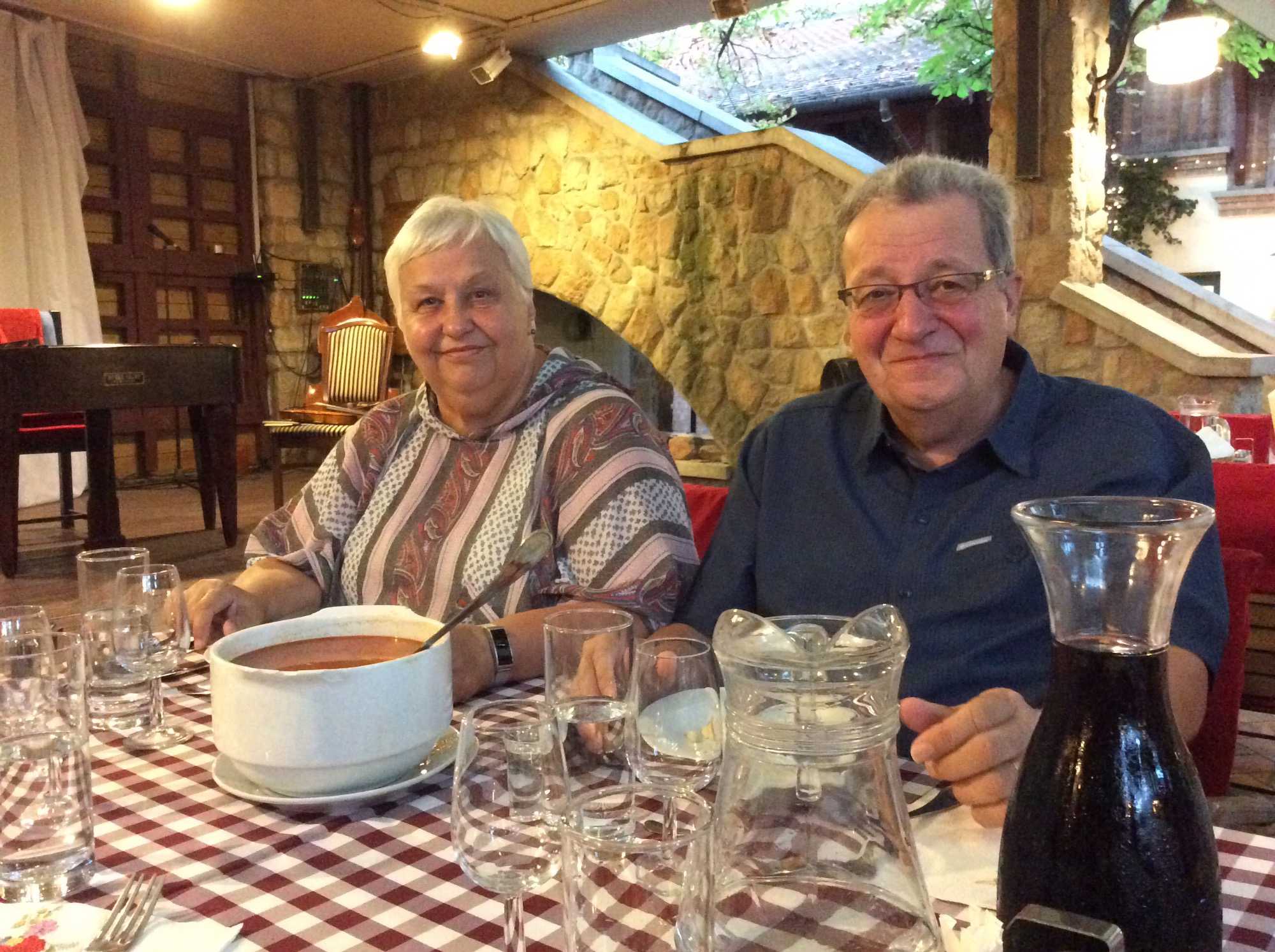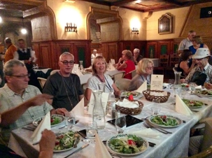 Puis on se dirige vers notre hôtel 4* de Budapest pour une nuit, l‘hôtel Museum. Le temps d'une douche et nous repartons pour notre repas du soir dans un restaurant au charme typiquement hongrois. Au menu, goulash et danses folkloriques relevées. D’ailleurs, Nicole, Ruth, Paul, Roger, Gérard et Alain ont été invités, à tour de rôle, à danser en compagnie de la troupe sous le regard amusé du groupe. Disons-le, ils se sont fort bien tirés d'affaire!