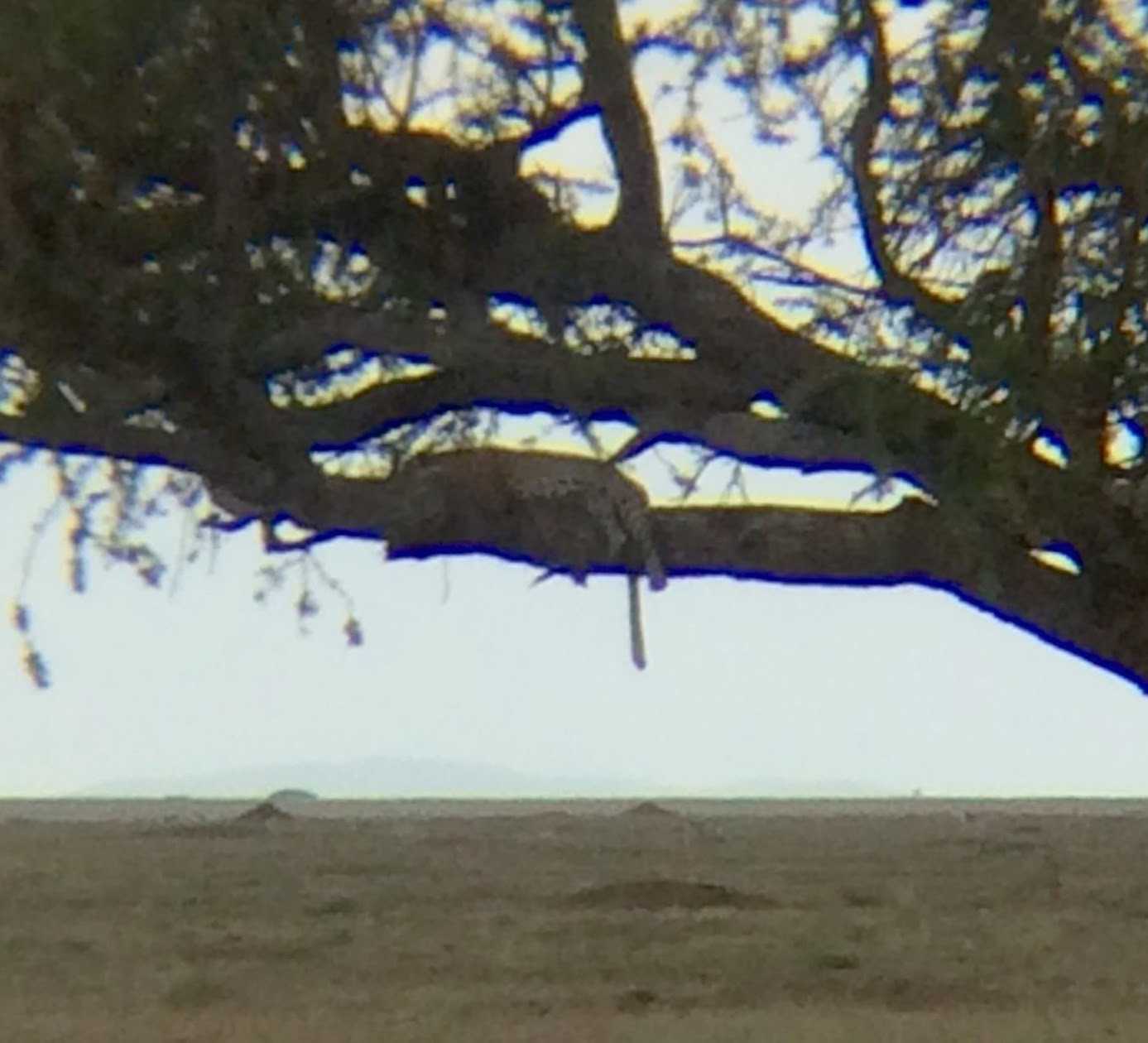un léopard sur une branche avec son petit bébé qui s’amuse à sauter sur les branches. Un éléphant qui vient à notre rencontre…