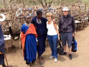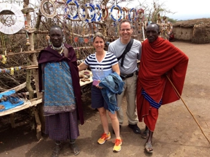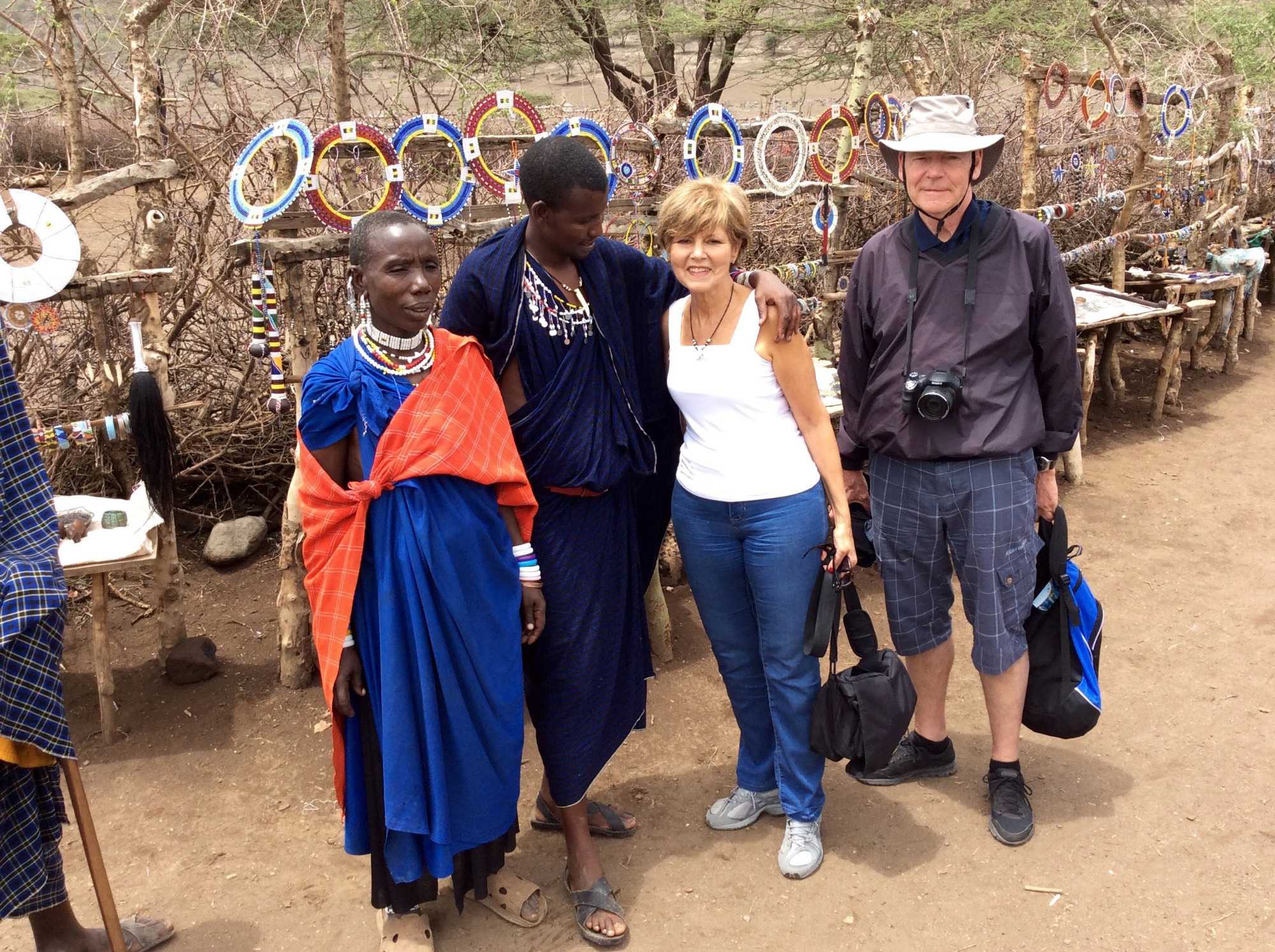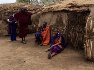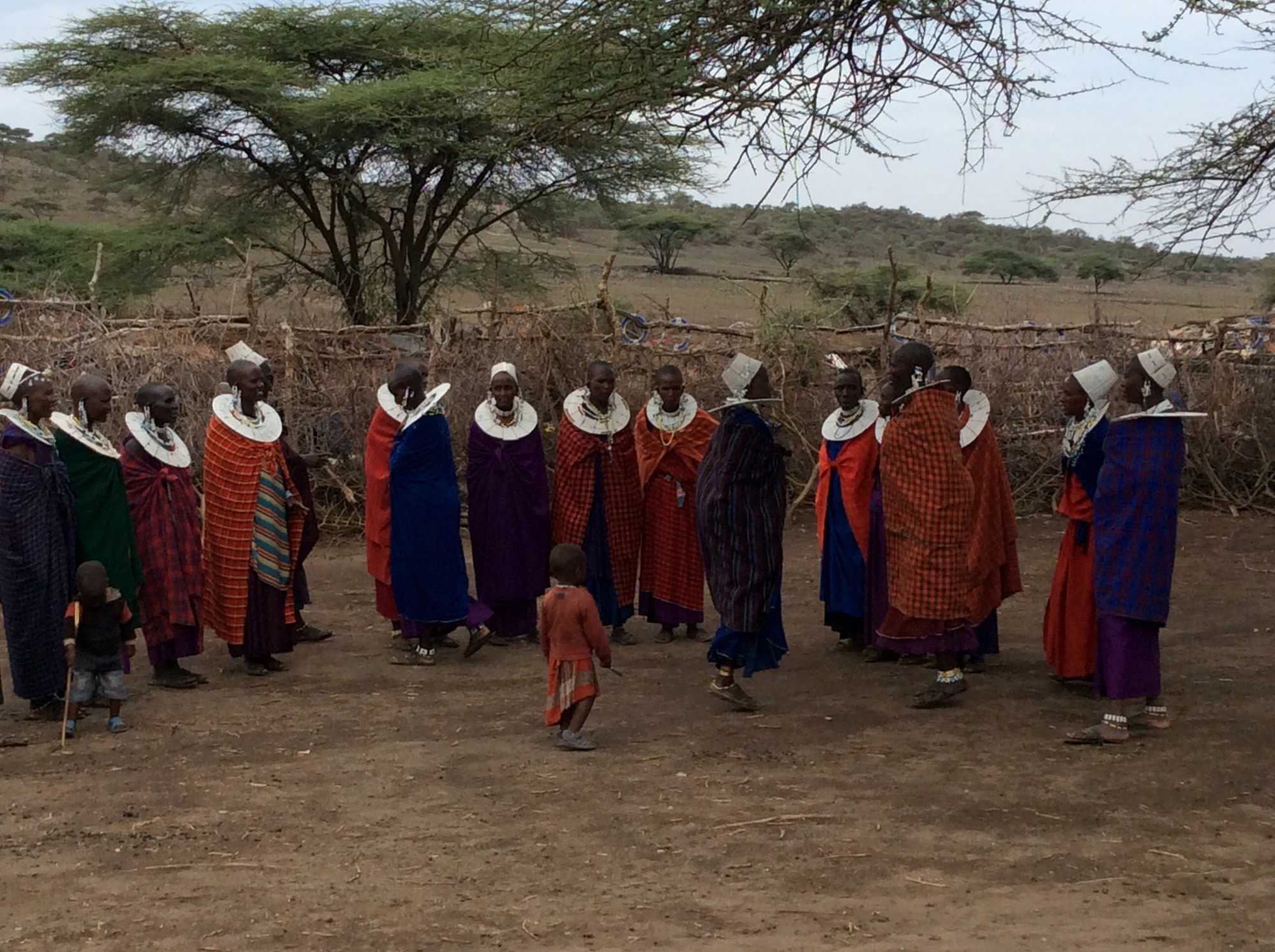 Nous poursuivons notre route vers un village Masai pour prendre le temps de s’imprégner et de partager leurs coutumes et culture. Nous sommes accueillis par le fils du chef du village qui compte plus de 120 personnes. D’un coté, les hommes vêtus de leur petite couverture colorée et bâton à la main. Et de l’autre, par les femmes avec leurs ornements de bijoux traditionnels (voir les photos, car beaucoup de détails!). Ils nous reçoivent avec une danse ancestrale pour nous souhaiter la bienvenue! (voir les vidéos). Puis nous pénétrons dans l’enceinte du village où une autre danse traditionnelle qui consiste de sauter le plus haut possible. Daniel et Jean-René ainsi que France et Anne y sont invités à y participer.