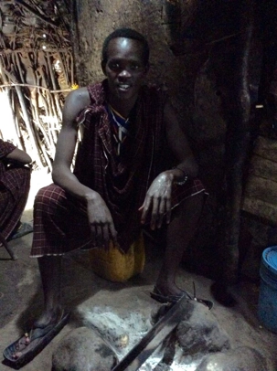 Les maisons sont toutes construites de la même manière : une pièce où les invités peuvent discuter, une pièce pour les animaux qui viennent de naitre, la pièce principale où il y a le feu pour cuire les aliments et les nattes en peau de vache déposées sur les 2 petits lits. Un lit pour les parents, un lit pour les enfants. Il n’y a pas de meubles. Il n’y a pas de fenêtre, mais que quelques petits trous pour faire entrer la lumière et dont l’un au toit pour évacuer la fumée. C’est un peuple qui se nourrit principalement de lait et de sang (ils prélèvent le sang des jeunes bovins sans les tuer, en incisant au niveau du cou d’une flèche tirée dans la veine jugulaire), un peu de viande mais à notre grande surprise,