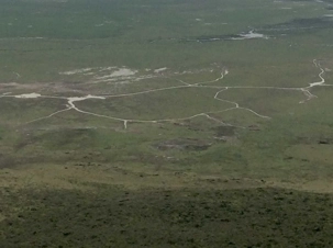 La piste est inondée par les pluies torrentielles d’hier soir. Ça donne un brin de sensation de plus à toute cette belle aventure! Le paysage est clair et verdoyant. La raison du retard de la migration est due au fait qu’à la dernière saison des pluies, il n’y a pas eu de pluie. Ce fut une sécheresse. Ce qui explique que les troupeaux débutent juste maintenant leur migration car le pâturage ne fait qu’à commencer à devenir vert. C’est la saison des naissances, les herbivores ont besoin de se nourrir davantage d’une herbe bien riche afin de donner à leurs bébés un lait riche en nutriments.