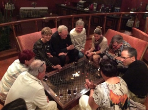 On se retrouve en soirée pour se faire un apéro dans le grand hall central. Beau moment de fraternité, en se partageant les bouteilles de vin offertes par Jean-René. Je me répète mais nous sommes vraiment une belle gang!