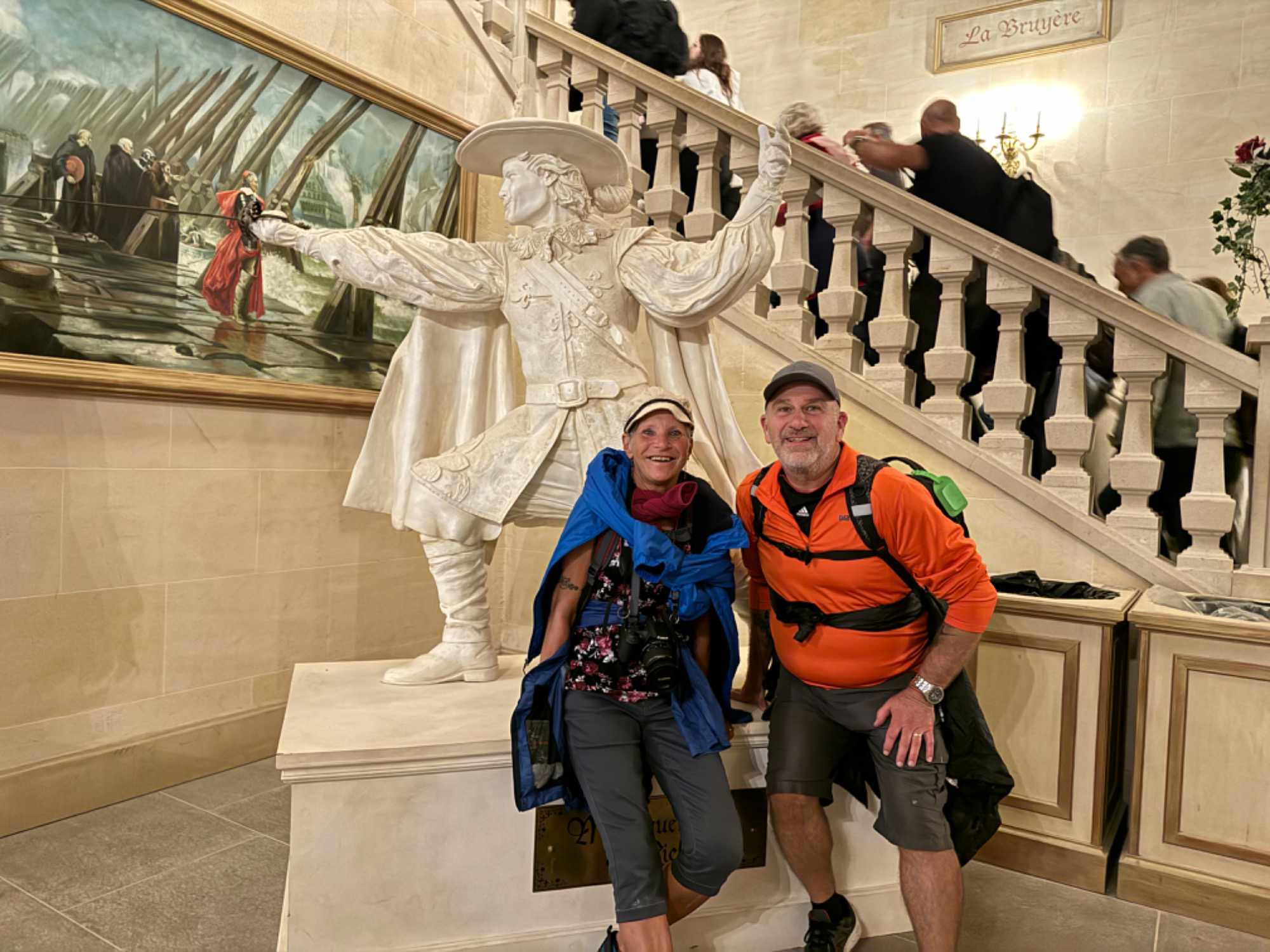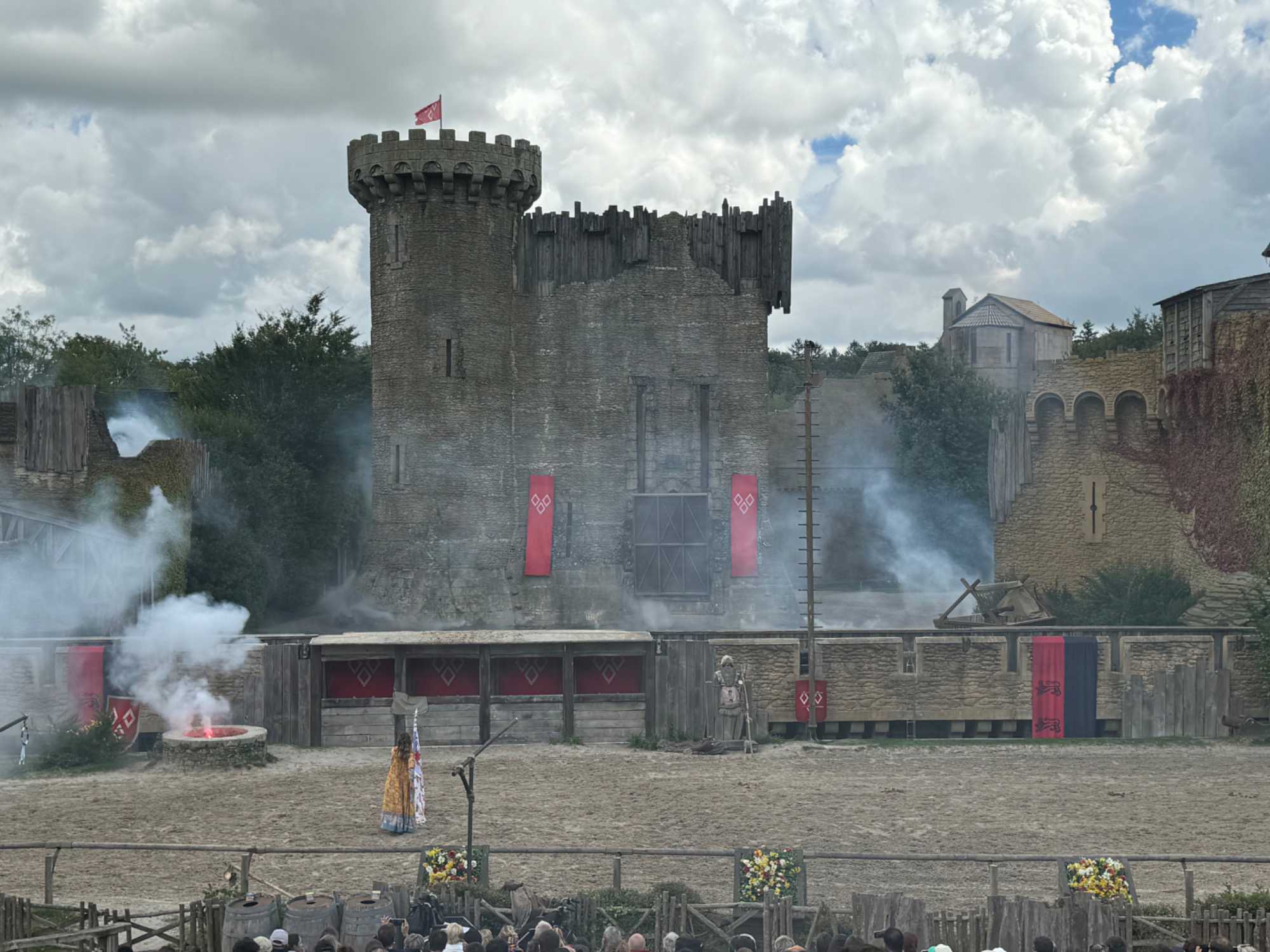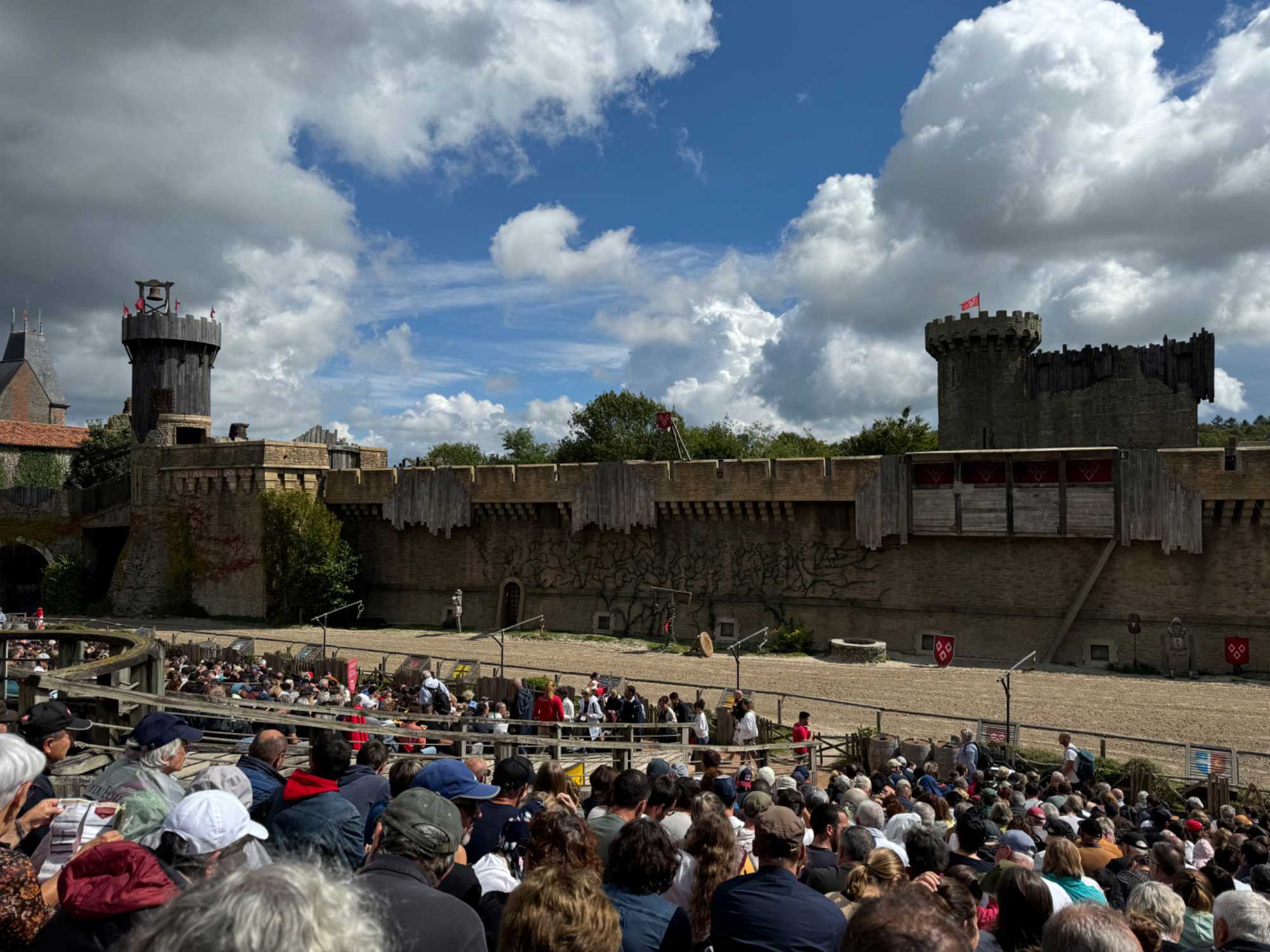 Nous déjeunons à notre hôtel avant de retourner au Puy du Fou; nous avons la chance d’y passer toute la journée. Le grand Parc met en scène des événements historiques de la région du Puy du Fou. Nous sommes charmés par les animaux dressés. Rapaces et oiseaux de proie, animaux de bergerie et chevaux de combat animant l’ambiance de leur présence. Les voyageurs découvrent des artisans dans un village du Moyen-Âge et son fort reconstitué en utilisant les techniques de l’époque. Nous déambulons au milieu de reconstitutions de coutumes ancestrales. Les métiers traditionnels ont pu être redécouverts au sein des villages : boulanger, tonnelier, maître verrier, forgeron et tant d’autres ont illustré les temps passés. Le site se présente à nous comme un grand livre d’histoire vivant. Nous suivons à nouveau notre guide pour ne rien manquer. Ça démarre par le spectacle des fauconniers, les combats à l’époque médiévale, suivi du magnifique spectacle Le Mime et l’Étoile, la musique du grand carillon et celle des mousquetaires de Richelieu. Tous ses spectacles nous ont éblouis !