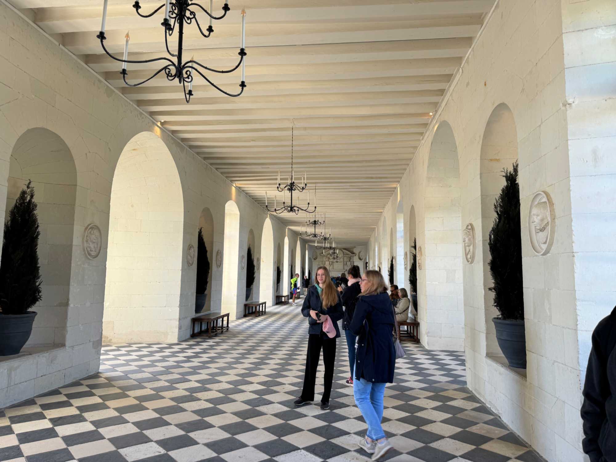 Après, nous quittons notre magnifique hôtel-château afin de poursuivre notre circuit des visites des châteaux de la Loire. Nous allons découvrir le site exceptionnel de Chenonceau, un véritable joyau parmi les monuments historiques français. L’histoire du château de Chenonceau est marquée par une succession presque interrompue de femmes qui l’ont bâti, embelli, protégé, restauré et sauvé; ce qui lui vaut le nom de « Château des Dames » depuis le XVIe siècle. Il est magnifique avec le charme de ses arches enjambant la rivière le Cher. En visitant l’intérieur du château, nous n’aurions jamais pensé qu’il soit aussi grand avec ses nombreuses pièces sur plusieurs étages. La galerie est un point d’orgue de la visite avec ce long couloir noir et blanc orné de lustres offrant la vue sur le Cher. Des balcons aux étages permettent d’avoir une vue étendue des paysages et des jardins. Ces derniers sont d’ailleurs très beaux et permettent de voir l’ensemble du château de Chenonceau.