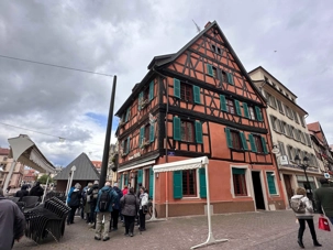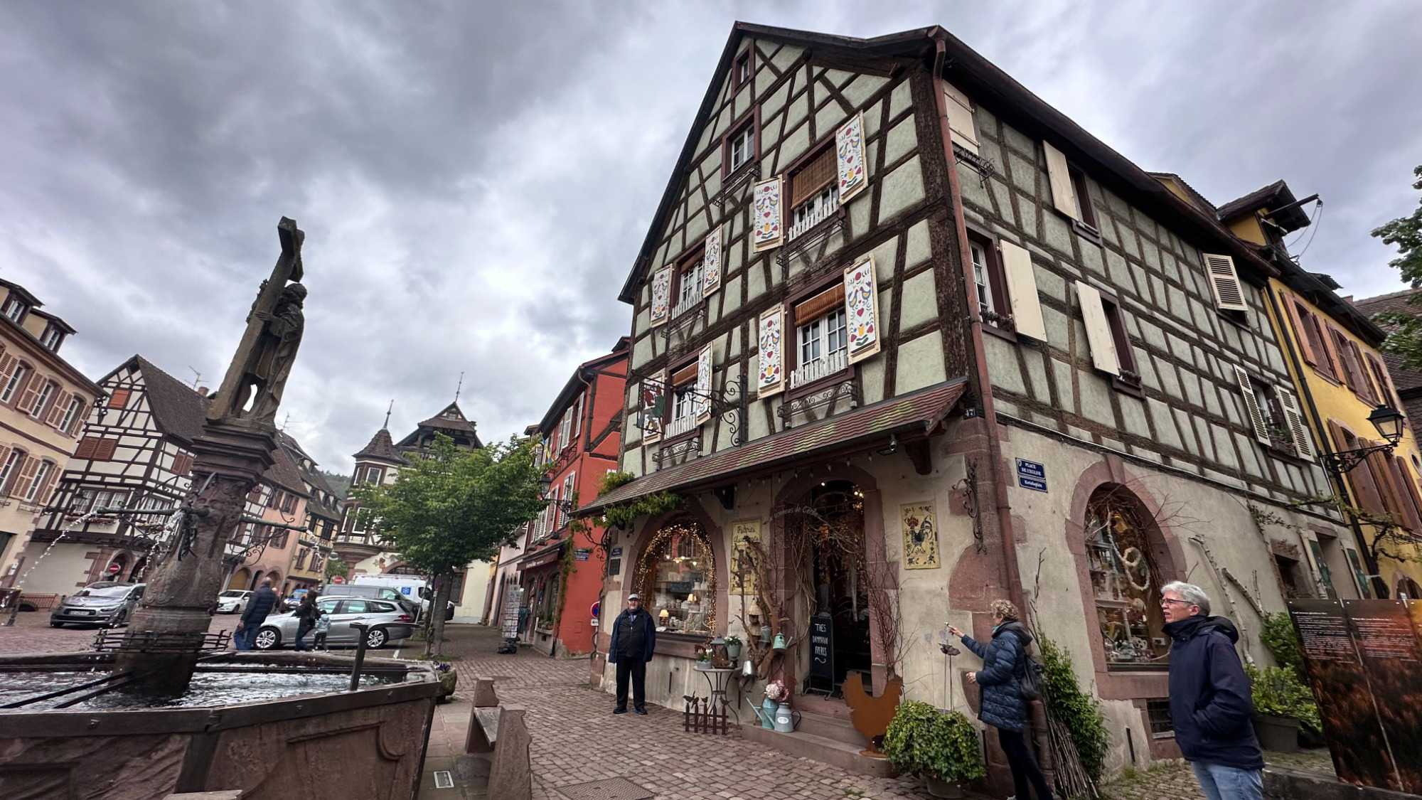 Village alsacien par excellence, Kaysersberg est un joyau nous réserve de belles surprises. Nous sommes charmés par la beauté et la richesse de son centre-ville historique. Claude nous propose un balade à pied dans ces ruelles sorties tout droit d’un livre de contes. Nous nous laissons surprendre par ces superbes maisons à colombage colorées, garnies de magnifiques oriels d’angle (fenêtre en encorbellement), ou fenêtres décorées auxquelles on peut déjà imaginer les géraniums qui fleuriront prochainement. Ses ruelles pavées, la rivière de la Weiss qui traverse la ville et le château médiéval surplombant le village et ses vignes forment un décor parfait. Nous apercevons une des maisons d’importance de Kaysersberg, la maison natale du docteur Albert Schweitzer, détenteur du prix nobel de la paix de 1952, natif de Kaysersberg qui abrite aujourd’hui le Centre Schweitzer.