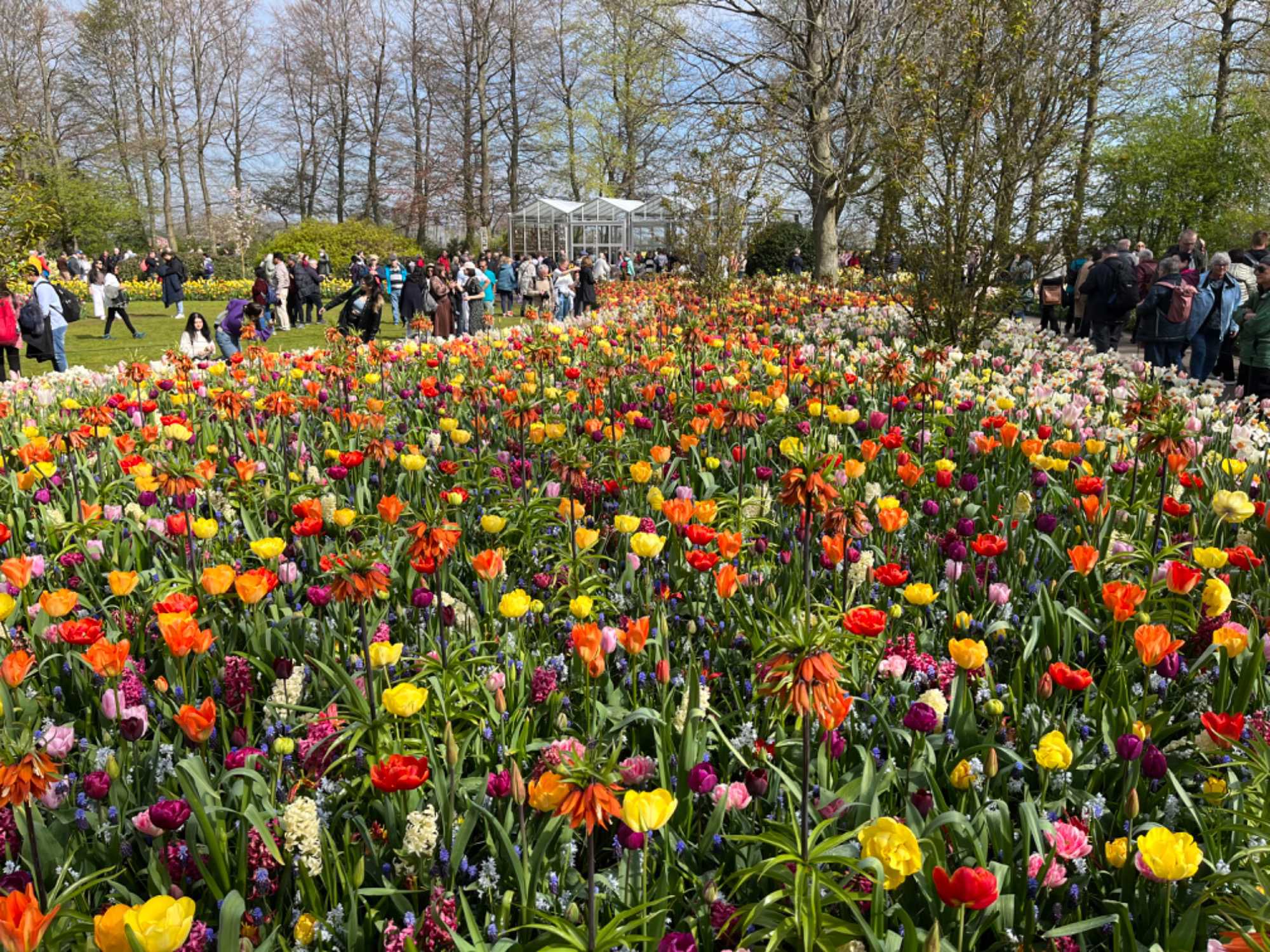 Keukenhof compte 15 km de sentiers de randonnée offrant une vue spectaculaire sur les jardins fleuris. Au cours de notre promenade, nous voyons des expositions de fleurs uniques, de beaux étangs et divers pavillons avec des restaurants et des terrasses. C’est notre chance de faire les plus belles photos de la journée. Le parc fleuri est également le plus grand jardin de statues des Pays-Bas. Nous y admirons de nombreuses statues réalisées par des artistes nationaux et internationaux. Tous nos voyageurs sont emballés par cet immense parc et la variété des fleurs qui s’y trouvent, principalement pour les tulipes. Toutes les photos prisent vont faire de très beaux souvenirs, peut-être même inspirer quelques artistes-peintres dans l’âme. Le parc d’exposition est entouré de champs de tulipes, de jacinthes et de jonquilles. Plusieurs pavillons présentent des expositions de fleurs (tulipes, orchidées dans le pavillon Beatrix). Un moulin à vent datant de 1892 fut installé dans le parc en 1957 pour une plus grande authenticité. Il permet d’avoir un point de vue en hauteur sur les champs aux alentours. Les anciens jardins à la française du château ont été conservés et des fontaines sculptées y furent ajoutés.