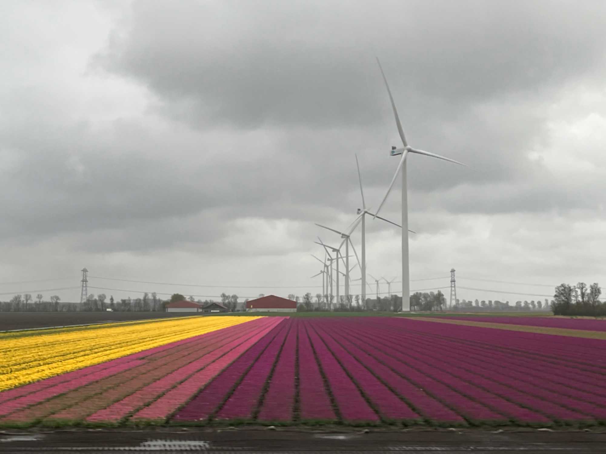 Nous dînons dans un restaurant typique de la ville et en début d’après-midi, nous faisons la route des tulipes pour retourner à Amsterdam. Les champs de tulipes sont plantés le long de cette route, qui fait généralement entre 80 et 100 kilomètres. Saviez-vous que le Flevoland a la plus grande étendue de bulbes à fleurs de la Hollande? C'est surtout dans ce polder du Nord-Est que nous trouvons les magnifiques champs de tulipes. Les nouvelles terres, récupérées au siècle dernier, se sont révélées être un terrain fertile pour les tulipes et d’autres cultures. Le Noordoostpolder est apparu avec l’assèchement de la Zuiderzee. Au 20e siècle, des parcelles de terre ont été récupérées des deux côtés de l’actuel lac de l’IJssel. Celles-ci devaient devenir de nouvelles terres agricoles. Dans le Flevoland, la plus jeune province de la Hollande et le plus grand projet de récupération des terres sur l’eau dans le monde, des millions de fleurs colorées apparaissent sur les terrains. En 1947, les premières terres agricoles du Nord-Est ont été accordées aux agriculteurs. Avec la poldérisation, deux îles particulières ont également été asséchées : Urk et Schokland. Au printemps, les gens peuvent faire de la marche ou du vélo le long de ces superbes paysages. Avec plus de 5 000 hectares de champs de tulipes, le Flevoland est l’une des régions les plus spectaculaires de la Hollande pour nous faire découvrir la production surprenante de fleurs du pays.