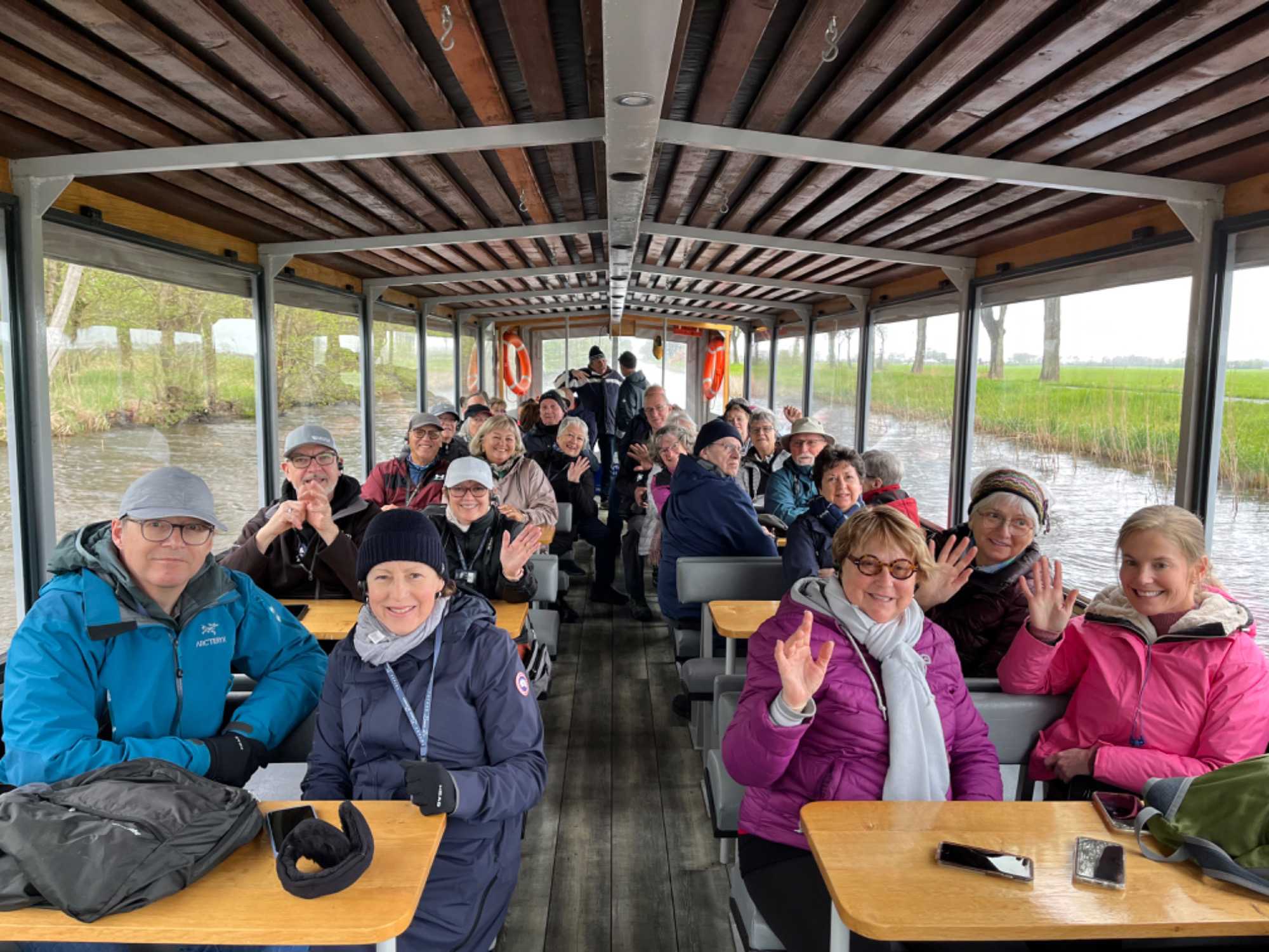 Nous reprenons la route pour une excursion dans un village hors de l’ordinaire soit le village idyllique de Giethoorn faisant partie du parc national de Weerribben-Wieden. Nous continuons ainsi notre belle aventure printanière au cœur des champs de fleurs des Pays-Bas! Ce parc n’est accessible que par l’eau ou par plus de 170 petits ponts. Dans cette région de la Hollande, se trouvent d’innombrables belles fermes aux toits en chaume construites sur des îlots de tourbe tous reliés par des ponts en bois caractéristiques. Giethoorn est un village typiquement hollandais, l’exemple parfait pour illustrer combien les Hollandais aiment vivre avec l’eau.