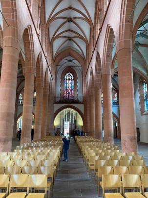 A Mannheim, un autobus nous attend pour aller voir une petite merveille: la ville de Heidelberg. C’est la ville du romantisme allemand; une ville au bord du Neckar, un affluent du Rhin, surplombée par un immense château de grès rose; un décor qui a inspiré de nombreux artistes de ce courant romantique. Des personnalités très connues sont tombées sous le charme, comme le compositeur Robert Schumann et l’écrivain américain Mark Twain.