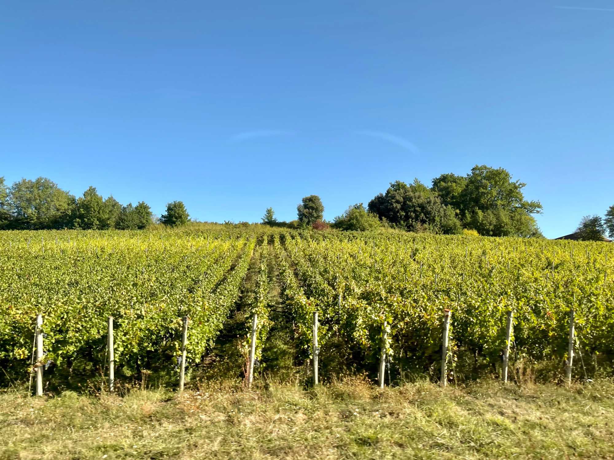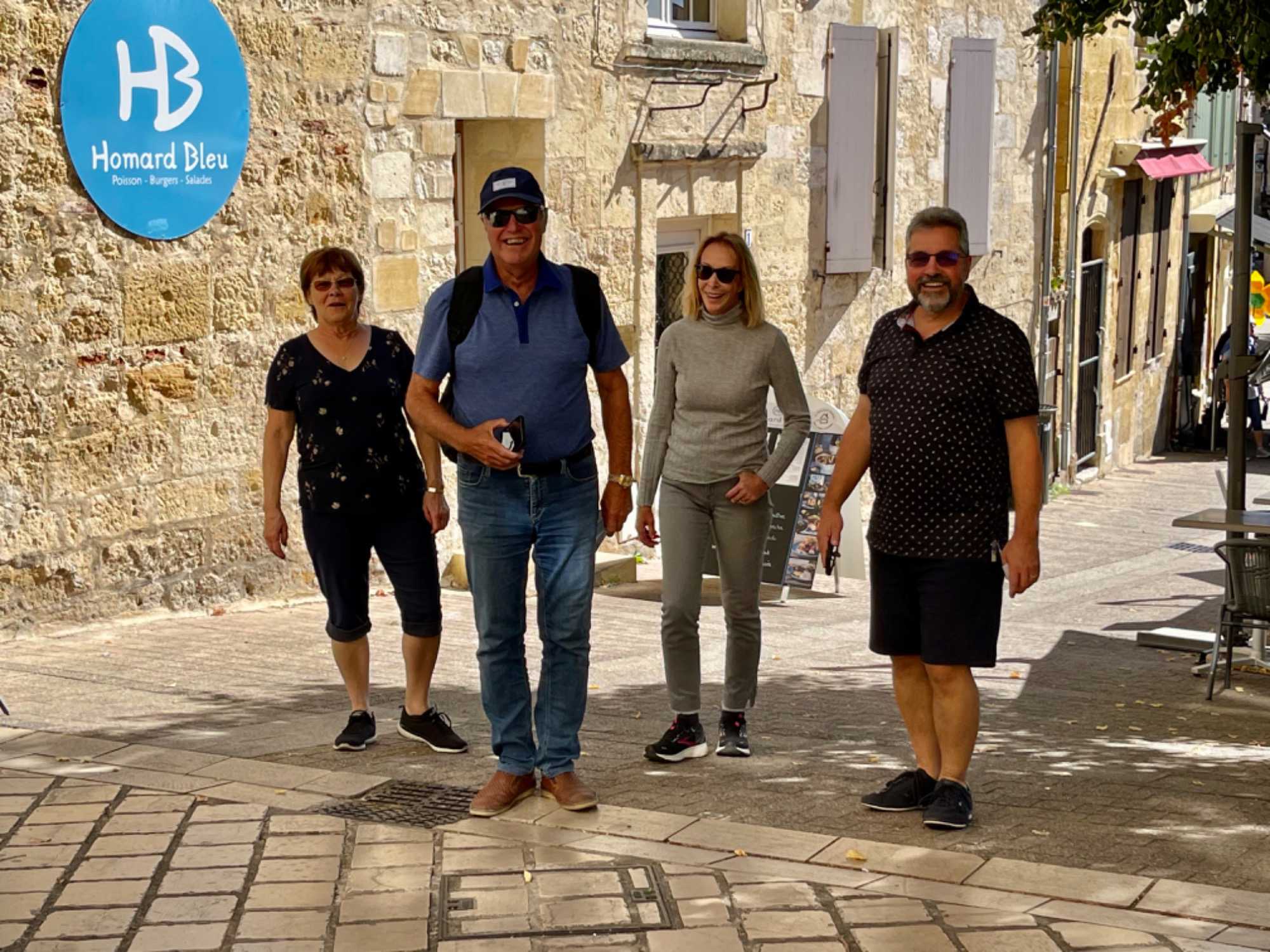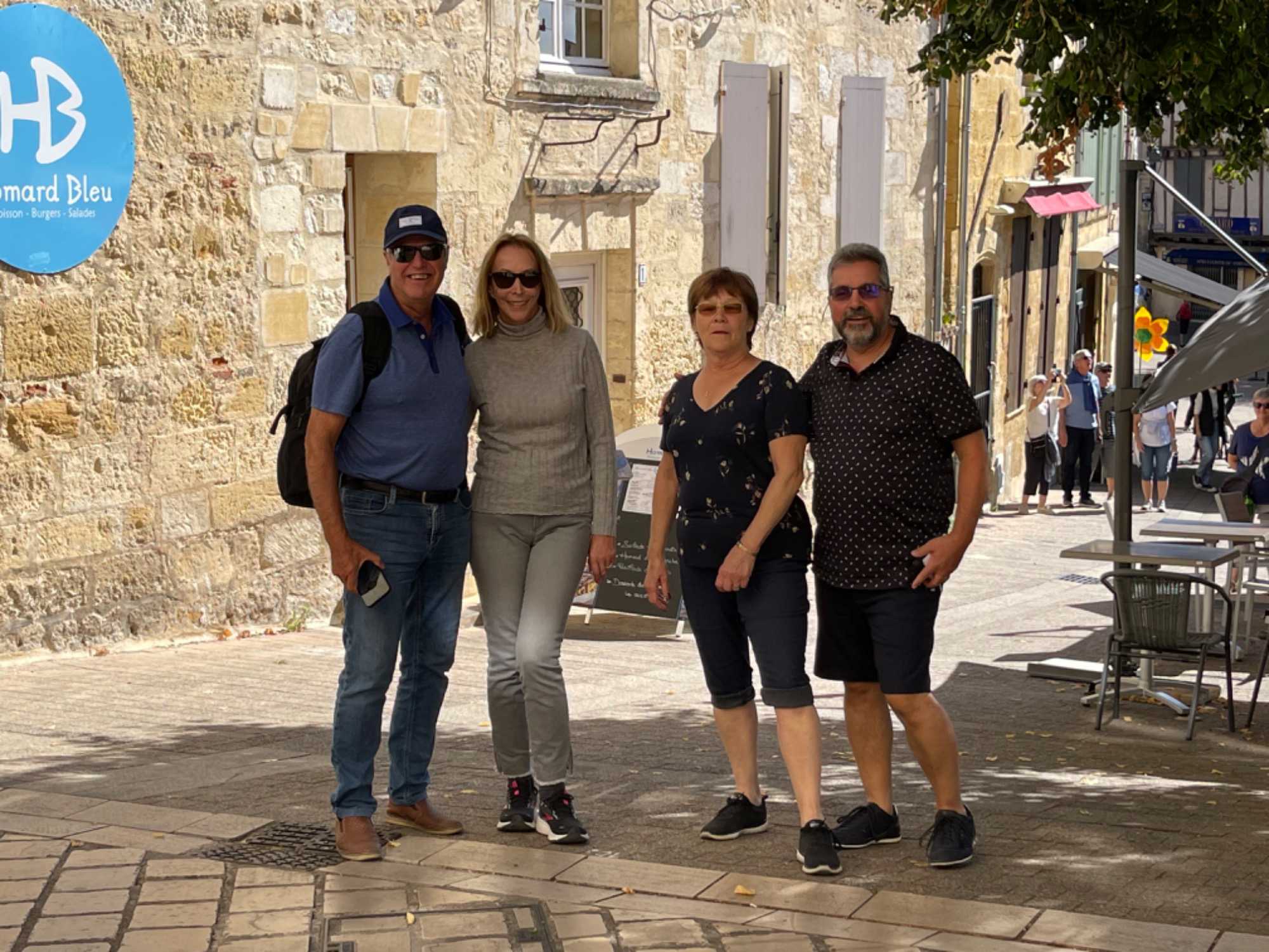 Une superbe journée ensoleillée encore ce matin à notre réveil à Bordeaux. La vue de notre hôtel est splendide le soir tout comme le matin. Hier soir nous avons eu un excellent souper et la vue de leur terrasse tout comme la température fût exceptionnelle. Nous avons bien profité de cette belle soirée. Ce matin, nous sommes tous prêts pour notre découverte de la belle région du Périgord. Nous prenons place à bord de notre autocar conduit par notre chauffeur Stéphane et accompagné de Jamie notre guide local pour la journée. Nous quittons Bordeaux avec un peu de trafic mais sans plus. Nous sommes à environ 1h30 de route de notre premier arrêt pour faire la découverte d’une région moins connue celle du Pécharmant. Le Pécharmant, un vin rouge de garde de grande typicité de la région de Bergerac. Le Pécharmant est un vin puissant, généreux et singulier, d’une grande intensité aromatique et au bon potentiel de garde. Bien vinifiés, certains crus proposent un nez un peu vanillé, une bouche charnue et des notes aromatiques de violette et de réglisse. Notre charmante guide du vignoble nous explique toutes ces belles différences et aussi nous parle de cette région particulière de Bergerac. Le vignoble de Pécharmant est le plus ancien vignoble du bergeracois. En effet, au XIème et XIIème siècles, existait déjà un vignoble qui dépendait du châtelain de Bergerac. C’est en 1080 que les moines du monastère Saint-Martin de Bergerac défrichèrent la vinée nord qui est aujourd’hui considérée comme la toute première région viticole bergeracoise. Pécharmant a été reconnue comme AOC par décret le 12 Mars 1946. La particularité de ce vignoble vient de son sol de « sables et de graviers du Périgord » issu de la transformation des roches granitiques du Massif Central. Le terroir a subi un lessivage superficiel, entraînant l’argile et le fer en sous-sol. Cette couche profonde et imperméable, dénommée « tran », donne au Pécharmant ce goût de terroir si typique à l’appellation. Le vignoble de Pécharmant bénéficie d’un climat océanique tempéré, et est bien exposé plein sud. Ce climat local favorise une bonne maturité du raisin et une concentration des sucres et des arômes.
