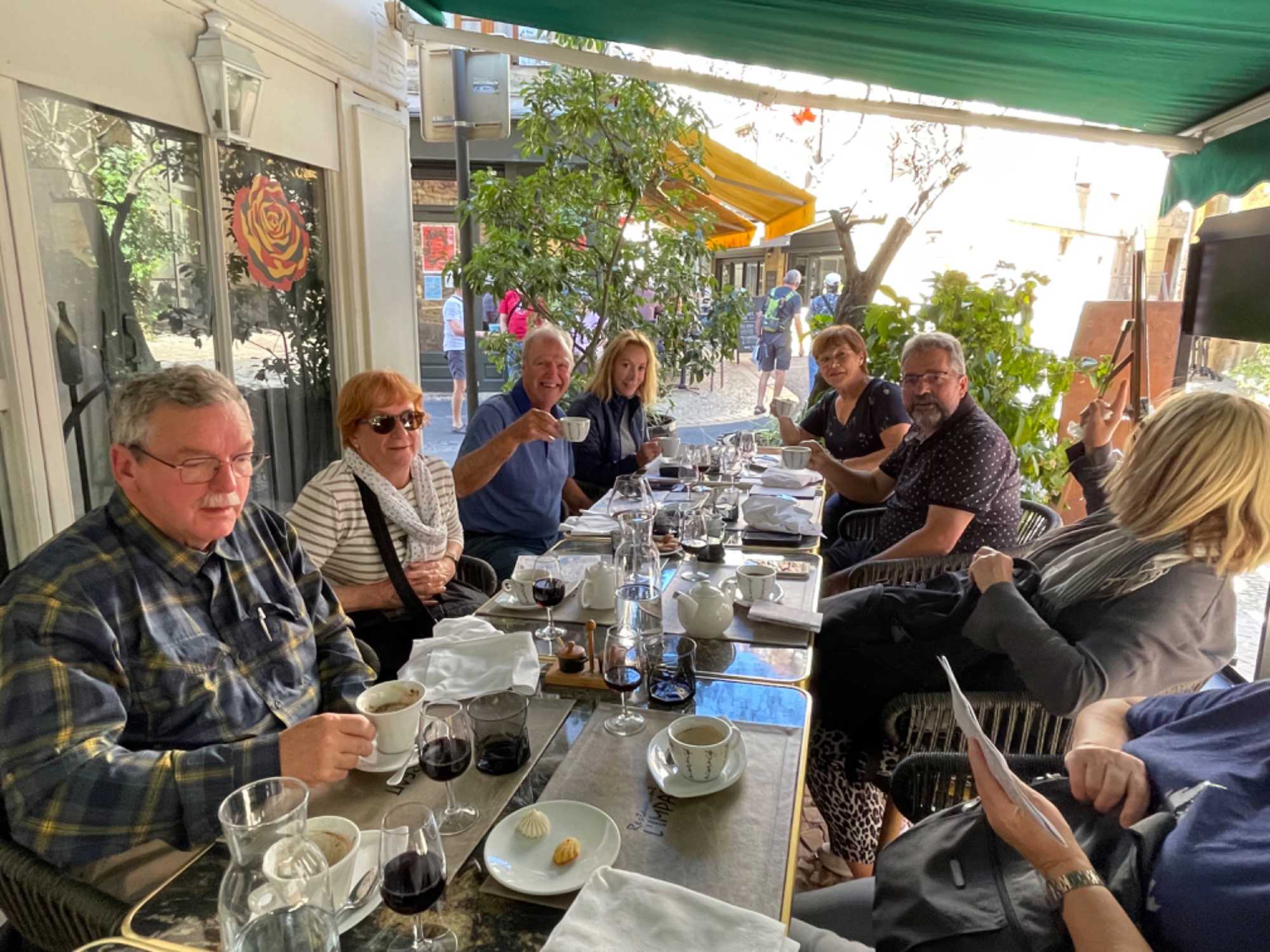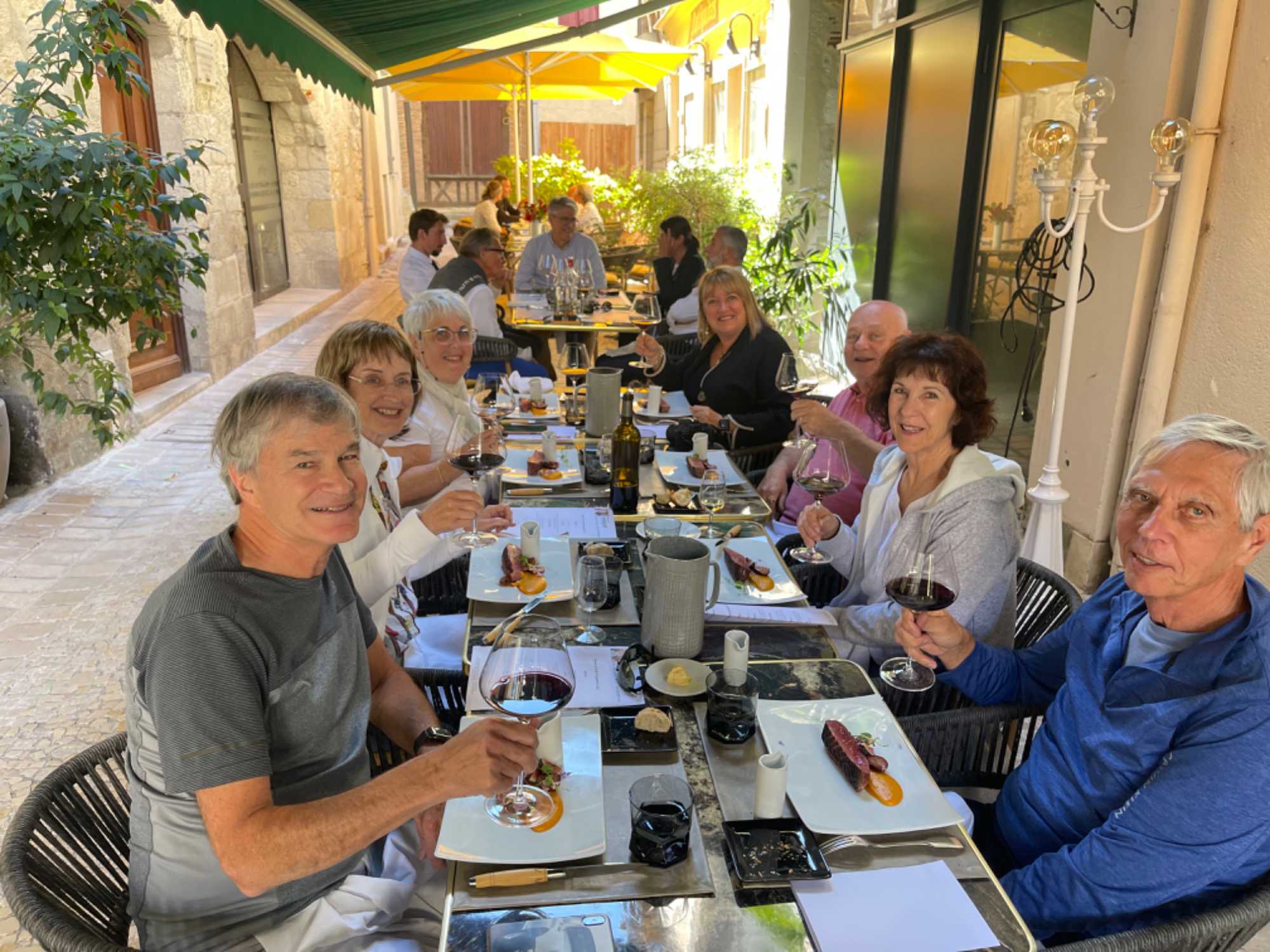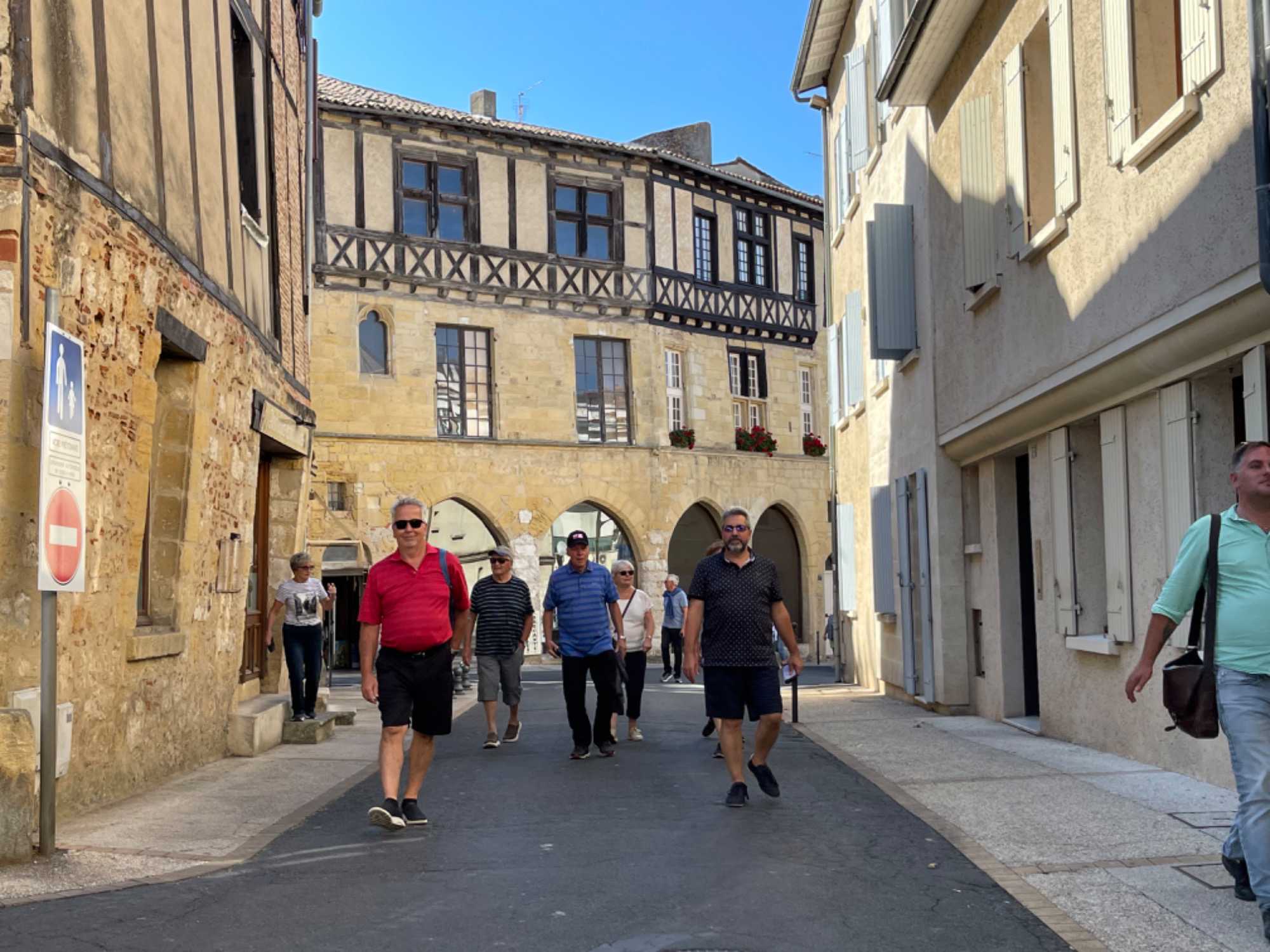 Une superbe journée ensoleillée encore ce matin à notre réveil à Bordeaux. La vue de notre hôtel est splendide le soir tout comme le matin. Hier soir nous avons eu un excellent souper et la vue de leur terrasse tout comme la température fût exceptionnelle. Nous avons bien profité de cette belle soirée. Ce matin, nous sommes tous prêts pour notre découverte de la belle région du Périgord. Nous prenons place à bord de notre autocar conduit par notre chauffeur Stéphane et accompagné de Jamie notre guide local pour la journée. Nous quittons Bordeaux avec un peu de trafic mais sans plus. Nous sommes à environ 1h30 de route de notre premier arrêt pour faire la découverte d’une région moins connue celle du Pécharmant. Le Pécharmant, un vin rouge de garde de grande typicité de la région de Bergerac. Le Pécharmant est un vin puissant, généreux et singulier, d’une grande intensité aromatique et au bon potentiel de garde. Bien vinifiés, certains crus proposent un nez un peu vanillé, une bouche charnue et des notes aromatiques de violette et de réglisse. Notre charmante guide du vignoble nous explique toutes ces belles différences et aussi nous parle de cette région particulière de Bergerac. Le vignoble de Pécharmant est le plus ancien vignoble du bergeracois. En effet, au XIème et XIIème siècles, existait déjà un vignoble qui dépendait du châtelain de Bergerac. C’est en 1080 que les moines du monastère Saint-Martin de Bergerac défrichèrent la vinée nord qui est aujourd’hui considérée comme la toute première région viticole bergeracoise. Pécharmant a été reconnue comme AOC par décret le 12 Mars 1946. La particularité de ce vignoble vient de son sol de « sables et de graviers du Périgord » issu de la transformation des roches granitiques du Massif Central. Le terroir a subi un lessivage superficiel, entraînant l’argile et le fer en sous-sol. Cette couche profonde et imperméable, dénommée « tran », donne au Pécharmant ce goût de terroir si typique à l’appellation. Le vignoble de Pécharmant bénéficie d’un climat océanique tempéré, et est bien exposé plein sud. Ce climat local favorise une bonne maturité du raisin et une concentration des sucres et des arômes.