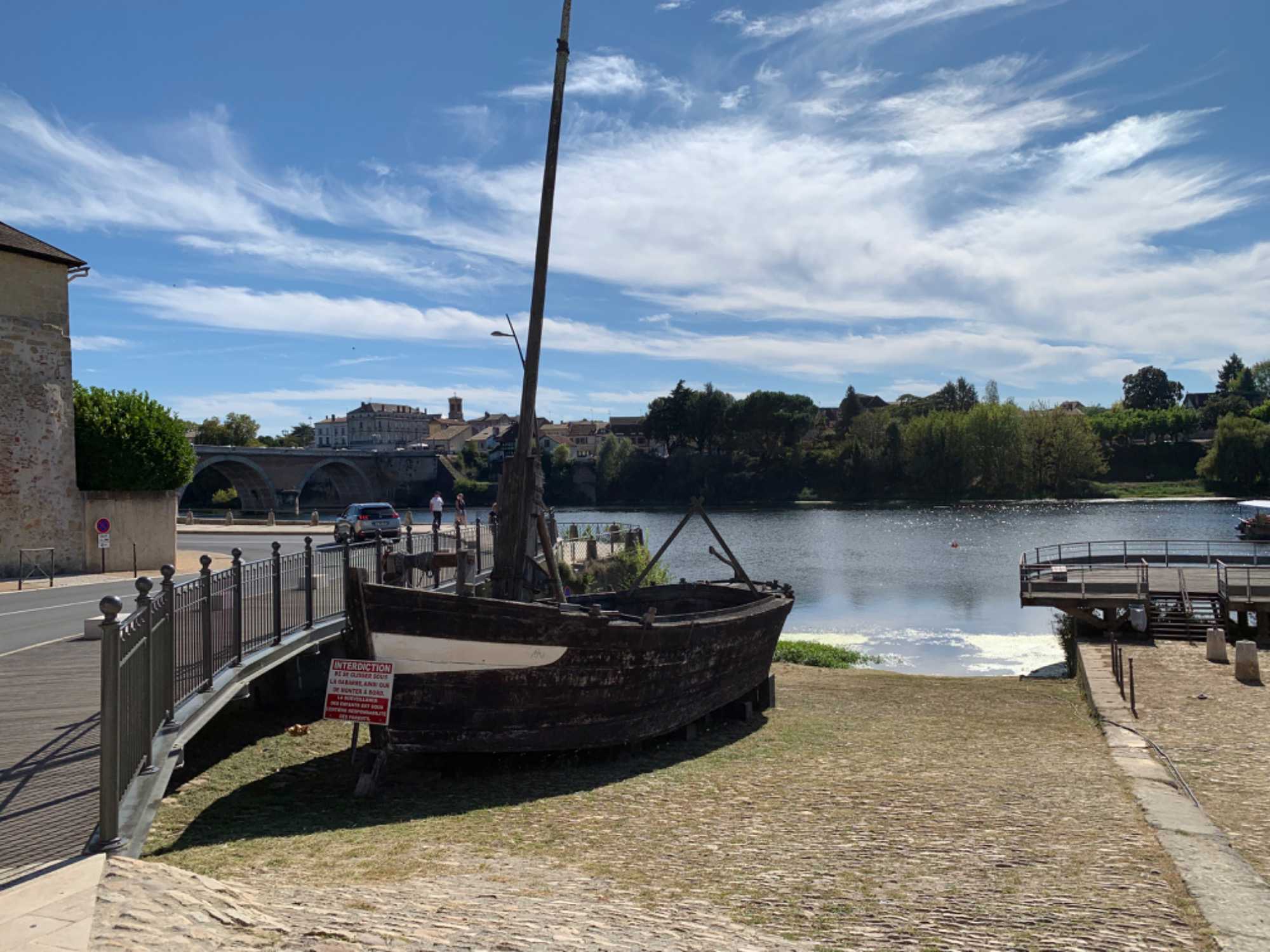 Nous avons dégusté ces vins avec grand plaisir avant de continuer vers notre prochain arrêt celui de la ville de Bergerac ou nous sommes attendus pour notre dîner au restaurant l’Imparfait mais qui était vraiment plus que parfait!!! Quel restaurant, quel délice et surtout quel plaisir nous avons eu bien installé sur leur terrasse pour déguster leur repas gastronomique avec accord mets et vins. Le foie gras était à l’honneur et que dire du magret de canard sans oublier le dessert sublime au chocolat fondant. Notre repas était digne des très grandes tables mais il faut dire que ce restaurant est l’adresse de la région du Périgord. Une belle petite promenade dans la ville médiévale après ce repas était bienvenue. Nous y avons rencontré Cyrano et oui le Cyrano de Bergerac, un peu méconnu de nous québécois… Bordée par la rivière Dordogne, entourée de vignobles, classée Ville d’Art et d’Histoire, Bergerac est vraiment une bien jolie petite ville. Plusieurs voyageurs y ont fait quelques achats surtout dans la boutique de produits fins de foie gras. La ville de Bergerac dont le nom est souvent associé à celui de Cyrano, célèbre personnage au long nez (crée par Edmond Rostand) qui n’était pourtant pas le véritable enfant du pays mais plutôt un homme poète et beau parleur mais très laid qui était affublé d'un nez énorme ... pièce de théâtre, film et livre ont raconté son histoire.