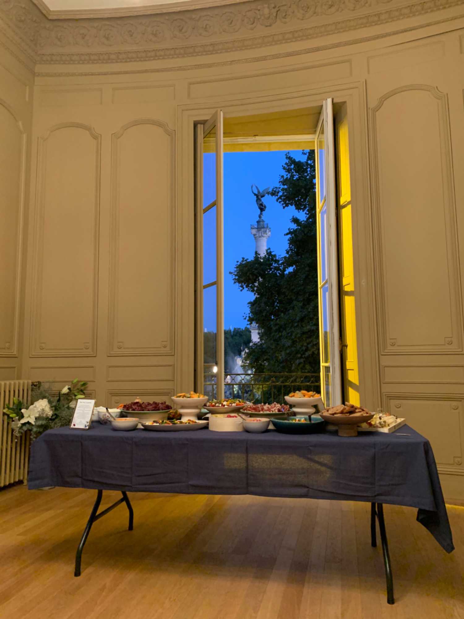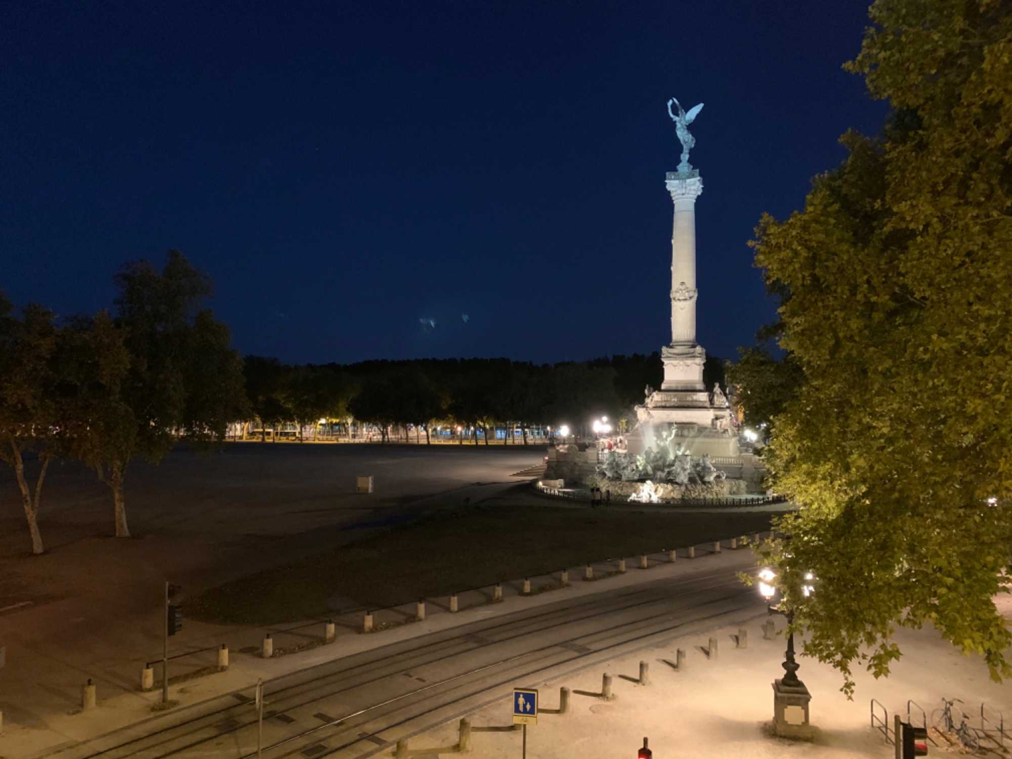 De retour à notre hôtel, nous nous préparons pour une autre belle sortie ce soir. Nous étions attendus dans une maison de ville face à la fontaine des Girondins sur la grande place des Quinconces de Bordeaux. Cette magnifique fontaine est composée de deux œuvres d'envergure de la fin du XIXe siècle. Ces sculptures représentent des allégories du « Triomphe de la Concorde » vers le jardin Public et du « Triomphe de la République » en direction du Grand Théâtre. Nous étions attendus dans cette immeuble avec la vue sur la fontaine pour une soirée privée élaborée par une cheffe et juste pour nous. La vue, la table et la cuisine était au rendez-vous. Nous avons même eu droit à quelques notes joués sur le piano dans la belle pièce où nous étions reçus, par Jacinthe. Notre cheffe nous avait préparé un charmant buffet a base de produits locaux et succulents. Une superbe soirée et toujours bien arrosé de bons vins locaux.