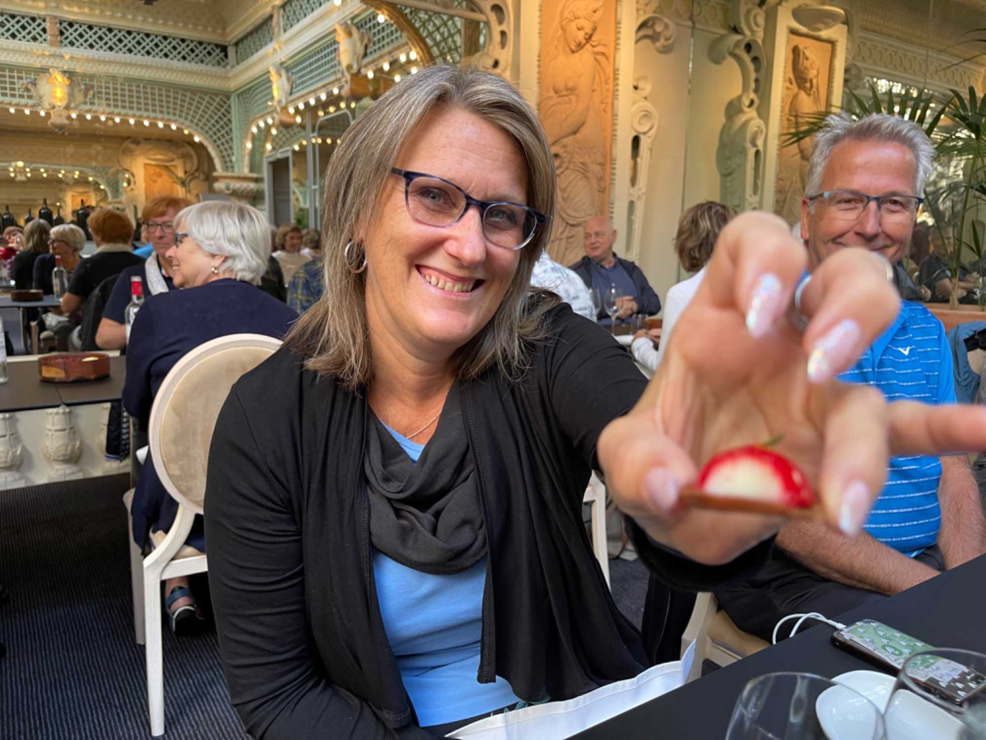 Nous avons repris la route à travers les vignes et les châteaux, quelle belle balade qui s’est terminée au restaurant étoilé Michelin, « Le Chapon Fin » pour une autre découverte gastronomique d’un endroit très en demande à Bordeaux. Tradition et générosité sont au menu de cette institution locale, qui ravit par son décor de rocaille créé en 1901 ! La cave est superbe, avec près de 250 références de vins au verre. Convivial et dépaysant. Un autre accord met et vin nous attendait. Nous avons été encore ici choyés par ce menu et ce service haut de gamme. Le restaurant était aussi magnifique. Nous avons quitté le restaurant et oui pour se diriger dans un bar à vin ou un expert en vin nous attendait pour nous parler et aussi nous faire déguster de bien bons vins de la région. Nous avons appris beaucoup en sa compagnie et il était vraiment intéressant. Était venu le temps de se diriger vers notre beau navire pour notre embarquement sur le Scenic Diamond pour les 10 prochaines nuits. Une superbe croisière de luxe nous attend et je vous ferai découvrir ce beau navire et ce service hors pairs. Le souper déjà a conquis tout mon groupe et la nuit réparatrice fût bienvenue.