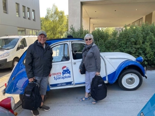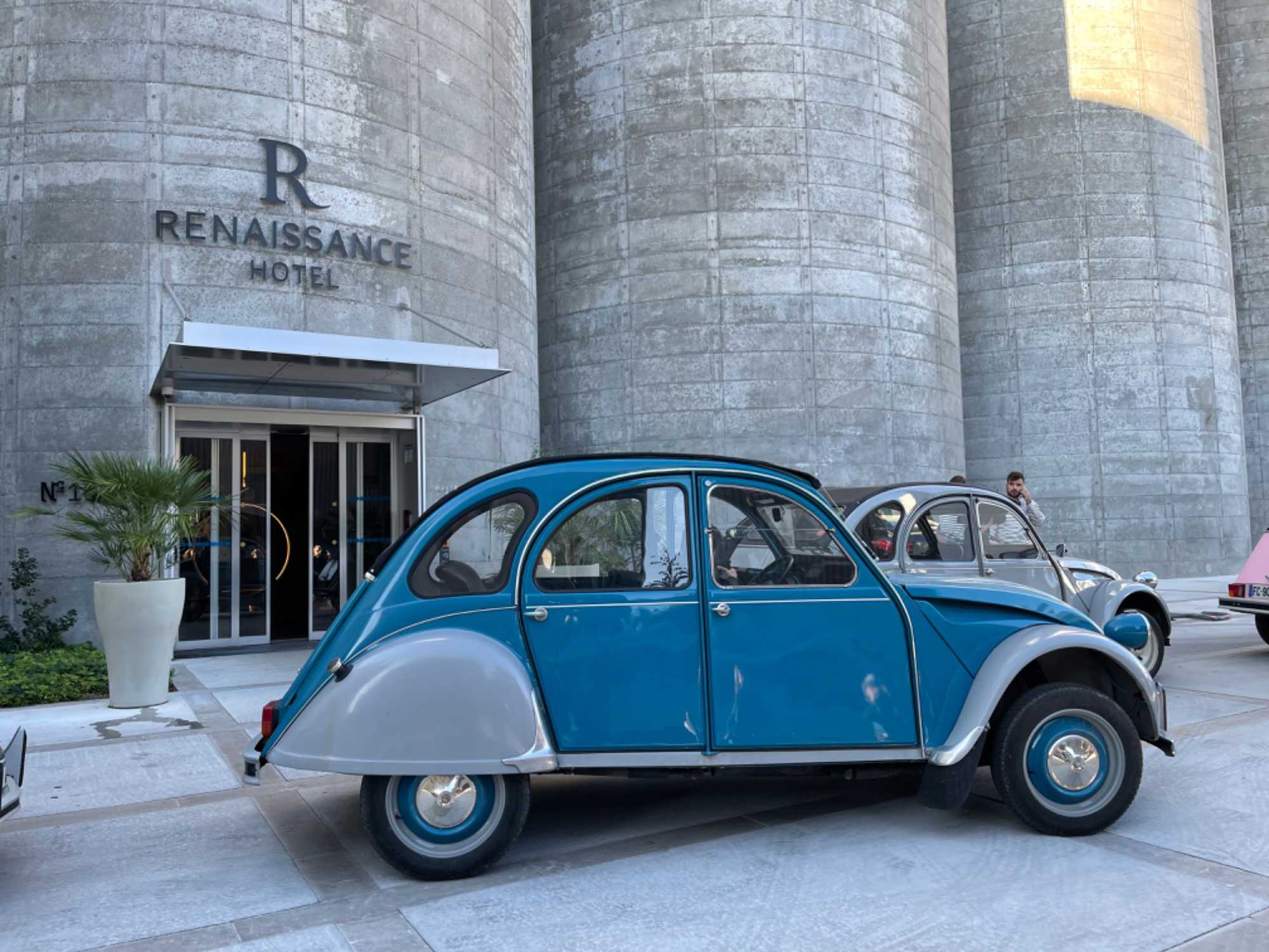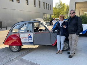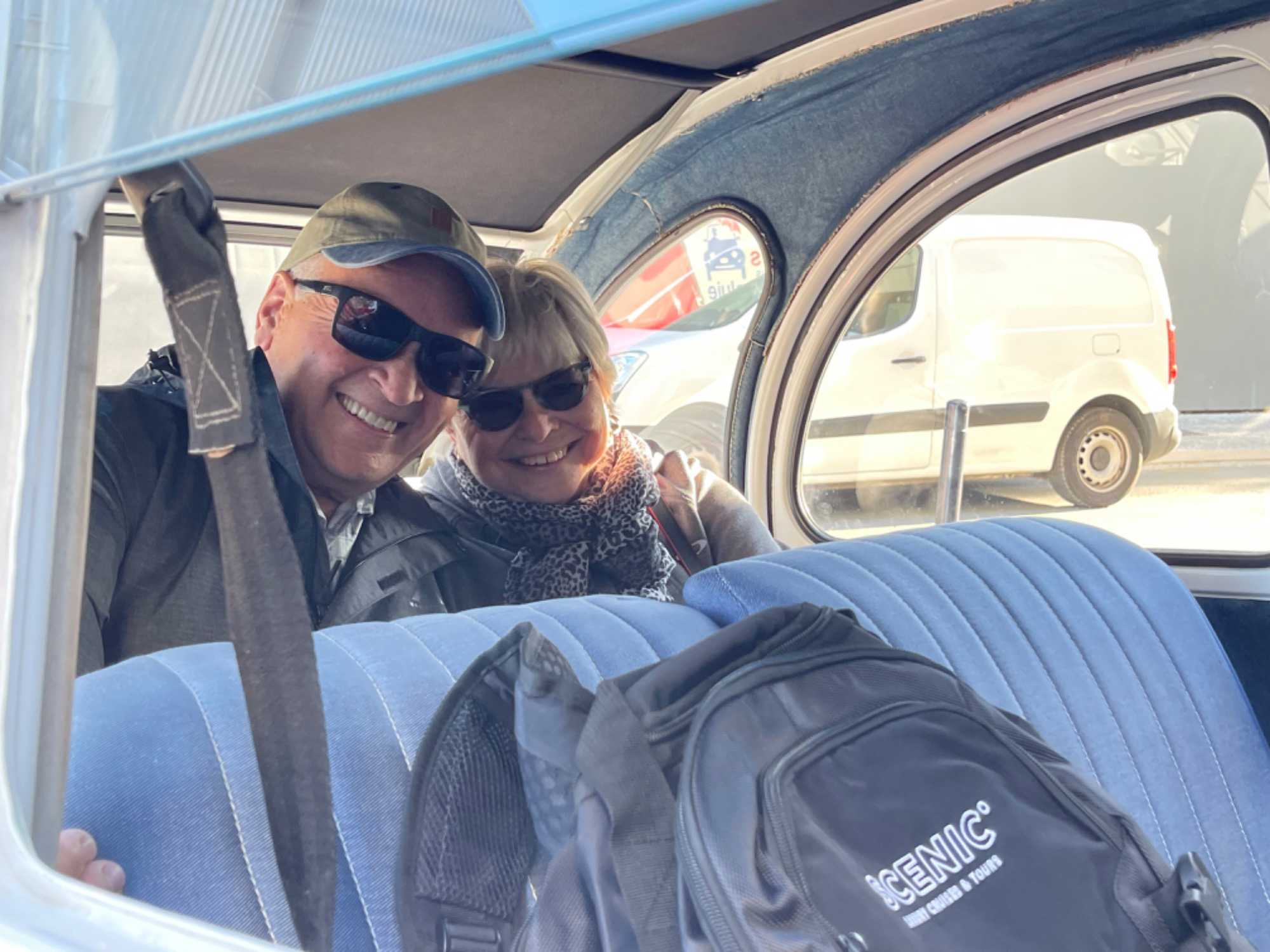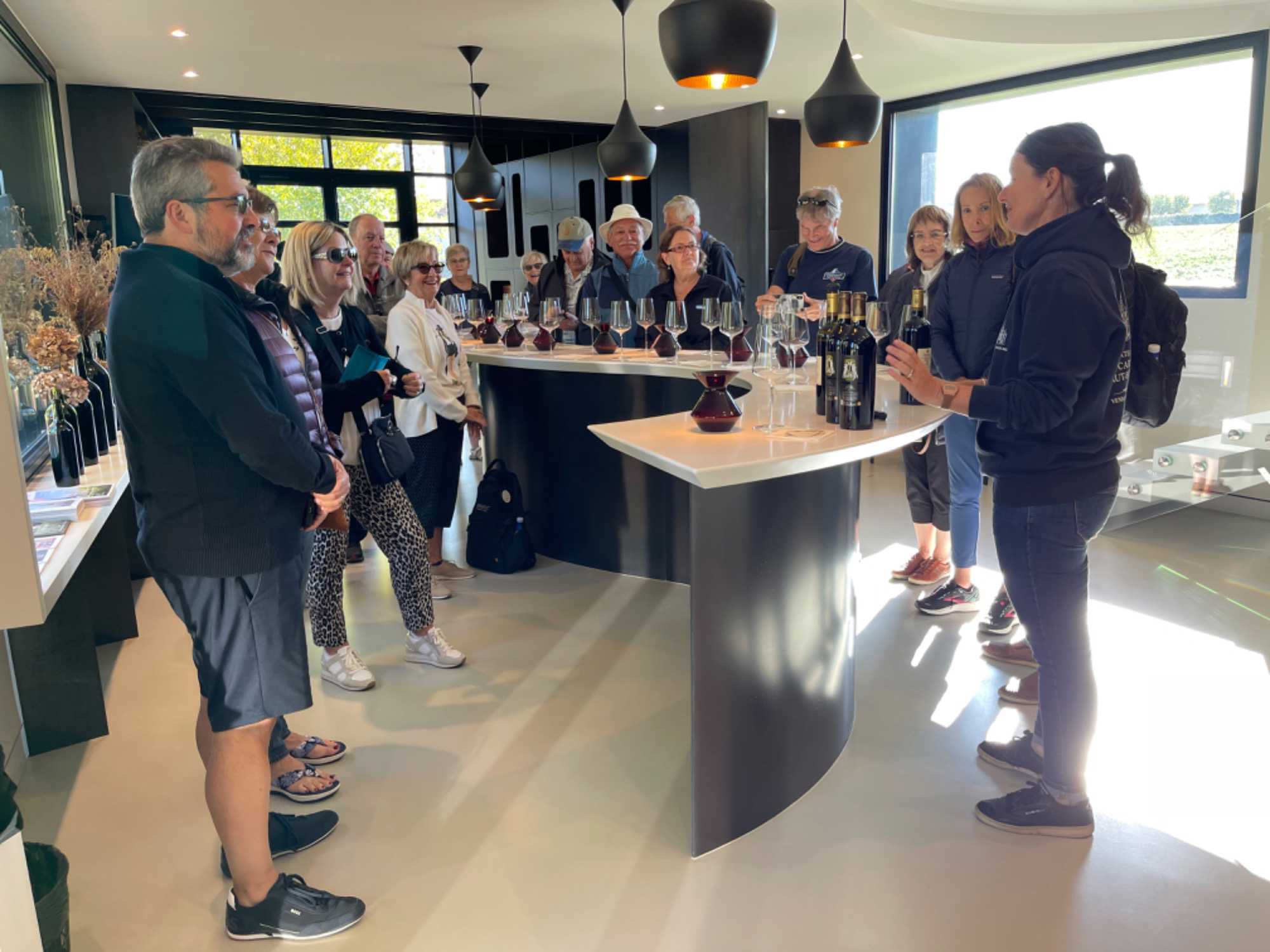 Et oui encore une le soleil est au rendez-vous pour notre plus grande joie. J’ai un super groupe qui sont d’excellents voyageurs. Je suis comblée de voyager en leur compagnie et de pouvoir m’amuser avec eux durant ce périple au pays des vins de Bordeaux. Ce matin, j’ai une petite surprise pour eux, et tous se demandent ce que sera cette surprise. Découvrir une ville c’est souvent la marcher et s’y perdre. Afin de ne pas juste marcher mais de pouvoir circuler dans les ruelles de la ville, mon ami Nicolas avait planifié pour mon groupe une découverte de Bordeaux inusité. Pour ce faire, comme c’était une surprise pour tout le groupe, mes voyageurs attendaient patiemment leur surprise devant notre hôtel. Et voilà que la première petite voiture 2CV arrive à notre hôtel. Et oui ces voitures mythiques de la compagnie Citroën qui ont vus le jour le 7 octobre 1948, lorsqu’elle a été présentée au Salon de l'automobile. Devenue voiture mythique de la marque Citroën, elle a permis de démocratiser l'automobile et fait encore rêver les Français et le monde entier. C’est l’un des véhicules les plus vendus de l’histoire avec plus de 5,1 millions de voiture 2 chevaux vendus dans le monde. C’était amusant de voir la réaction de mes voyageurs qui prenaient place dans ces voitures anciennes. J’ai profité pour faire de belles photos que j’appelais mes photos de mariage en prenant les photos de mes couples assis à l’arrière de leur voiture. Nous sommes donc partis à la découverte de la ville et de sa campagne environnante. Quelle belle balade amusante nous avons fait. Une autre surprise nous attendait une dégustation privée dans un vignoble réputé situé sur la frontière de la ville. Nous étions sur une appellation de Pessac-Léognan.