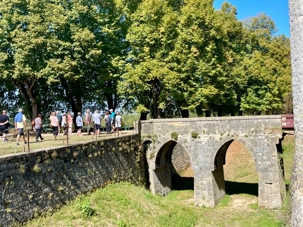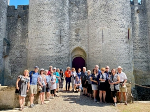De retour au navire, pour le lunch toujours exceptionnel, avant de repartir en après-midi pour la visite du Château Roquetaillade. Nous avons vu le vicomte qui faisait office de guide lui aussi. Notre charmante guide du château, nous a entretenus pendant près d’une heure à la découverte de ce site exceptionnel. Non seulement intéressant mais vraiment passionnant! Leur château, au milieu d’un immense parc aux arbres centenaires, est tout simplement magnifique. De forme rectangulaire, muni de six tours, il est surmonté d’un donjon central impressionnant. Classé Monument Historique en 1840, Roquetaillade est constitué de deux châteaux forts du XIIème et XIVème siècle, toujours habités et entièrement meublés, par la même famille depuis plus de 700 ans. Deux importantes restaurations ont marqué son histoire : celle de la Renaissance, qui a laissé en particulier des cheminées monumentales et celle de l’architecte Viollet le Duc, au XIXe siècle, qui a transformé l'édifice en palais forteresse sur une période de onze ans. Ce dernier a décoré plus particulièrement la chapelle Saint-Michel et l’entrée principale du château. La transformation est tout à fait réussie et c’est définitivement une vie de château pour le vicomte et sa mère! Les photos prises lors de cette excursion vous prouvent que la température est vraiment splendide!