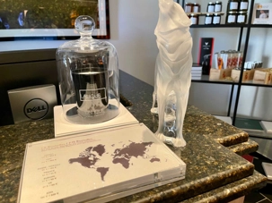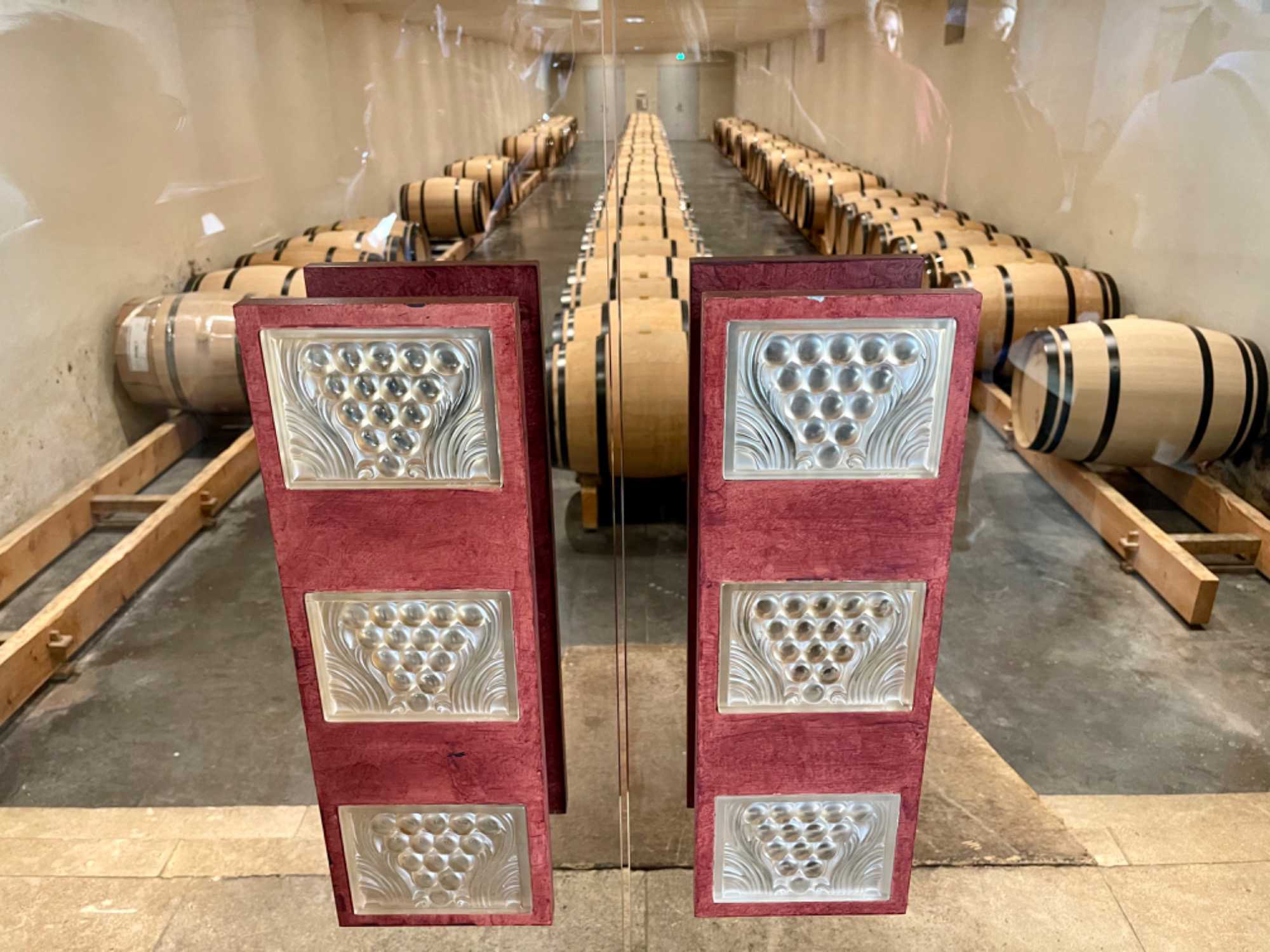 Pour vous parler un peu de notre hôte, ce matin, ce château est situé au cœur des grands terroirs du Sauternais, le vignoble de Lafaurie-Peyraguey est situé sur la haute terrasse de graves de Sauternes, à 70 m au-dessus du niveau de la mer, voisin de Château d’Yquem. Appelé aussi « Maisons Rouges », est aujourd’hui une parcelle du domaine, était un lieu d’étape des Romains et les plus vieilles pierres du mur d’enceinte et le porche d’entrée, considéré comme le plus vieux monument de la commune de Bommes, datent du XIIIème siècle. Pierres et archives du château (depuis 1742) sont les témoignages du riche passé de Château Lafaurie-Peyraguey : huit siècles d’histoire conservée! À l’occasion des 400 ans de Château LAFAURIE-PEYRAGUEY, un nouvel hôtel-restaurant Lalique ouvre ses portes en juin 2018. À l’initiative de Silvio Denz, cette adresse se veut convergence de quatre univers : le vin, le cristal, la gastronomie, l’hospitalité. Quelques mois seulement après son ouverture, le Château Lafaurie-Peyraguey – Hôtel & Restaurant Lalique rejoint la prestigieuse famille Relais & Châteaux, devient par la suite un établissement 5 étoiles, et le restaurant se voit décerner une étoile au guide Michelin dès sa première année d’ouverture et maintenant en a ajouté une autre. Les vins de Château LAFAURIE-PEYRAGUEY forgent leur identité de la coexistence de quatre éléments : son terroir, posé entre Garonne et Ciron, qui se caractérise par ses sols gravelo-sableux, un microclimat unique, la présence du champignon “ botrytis cinerea ” et d’un cépage dominant, le sémillon. Reconnu Premier Grand Cru Classé de Sauternes lors du classement de 1855. Nous avons été impressionnés lors de la visite de son chai, par son exceptionnelle barrique en cristal Lalique ainsi que sa chapelle, entièrement décorée par Lalique.