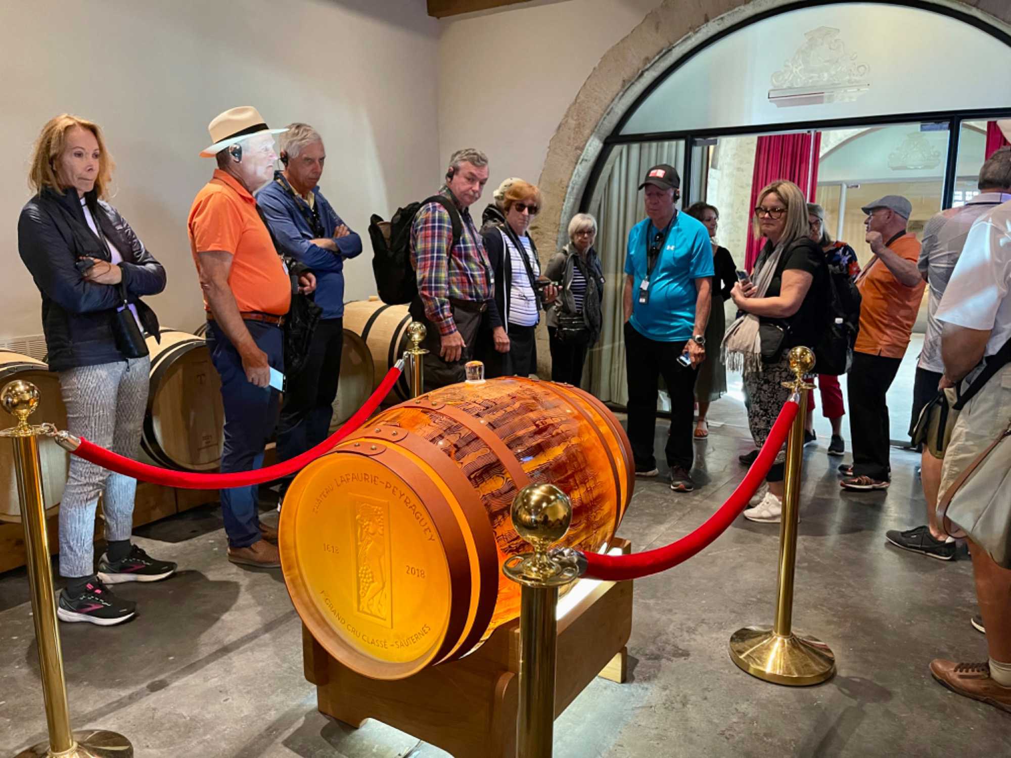 Et oui une autre magnifique journée de croisière, sous le soleil de la France. Nous avons la chance de parcourir cette superbe région couverte de vignes à perte de vue confortablement assis dans notre autobus réservé pour nous, chez Voyage Louise Drouin. C’est bien important pour moi de privatiser ces services afin de donner le maximum à mes voyageurs durant cette belle croisière fluviale. Comme la compagnie Scenic est une compagnie australienne 5* de luxe, vendue presque inclusivement à une clientèle anglophone, c’est de notre devoir de prévoir le tout et de privatiser pour mon groupe, autobus et guide sinon toutes les excursions et activités à bord seraient en anglais. Difficile de s’imaginer faire des visites en France en anglais…. Mais nous sommes les chanceux avec notre autobus pour notre groupe de 23 passagers. Notre guide attitrée pour tout le voyage est Valérie et ce sera un plaisir, que de voyager avec elle dans sa région. Ce matin, nous partons donc à la découverte des vins de Bordeaux, dans une région importante pour la production de vin de Sauternes. Cinq communes de cette région produisent les vins de Sauternes et notre autobus, nous amène vers l’une d’elle, celle du Château Lafaurie-Peyraguey. Mes connaisseurs sont heureux de ce choix de Scenic et moi donc car cette propriété est aussi un Relais et Châteaux. J’ai eu droit à une visite privée pour moi et vous verrez quelques photos, cela serait un de mes choix pour se gâter…. En chemin, notre autobus fait plusieurs arrêts afin de nous laisser le temps d’admirer les champs de vignes et les collines couvertes de rangées de vignes. Nous nous arrêtons pour voir le célèbre Château d’Yquem (Premier cru supérieur de sauternes, chef de file de l’appellation, il est l’un des plus anciens châteaux viticoles de la région; XVe siècle). Il faut dire que le château Lafaurie-Peyraguey, qui nous reçoit, est son voisin de terroir. Nous nous laissons inspirer par tant d’histoire et par une culture unique, de magnifiques villages anciens, d’incroyables paysages naturels dessinés au cours des siècles par la Garonne, de coteaux et de vallons d’une beauté époustouflante.